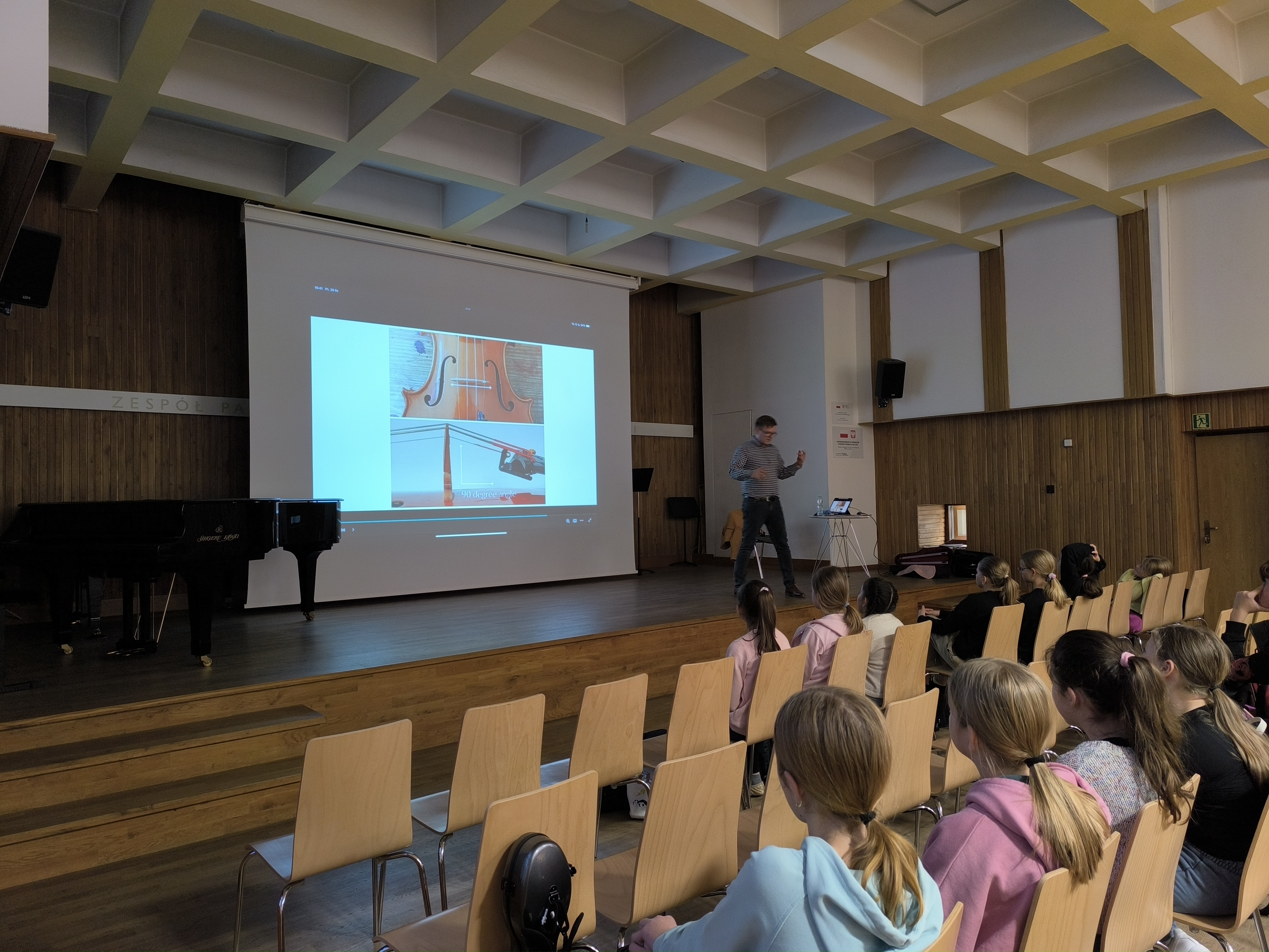 W dniu 29 listopada 2024 r. odbyły się w Naszej Szkole warsztaty skrzypcowe dla nauczycieli i uczniów klas skrzypiec. Warsztaty prowadził pan mgr Leszek Dzierżęga z ZPSM im. Mieczysława Karłowicza w Krakowie, konsultant CEA.