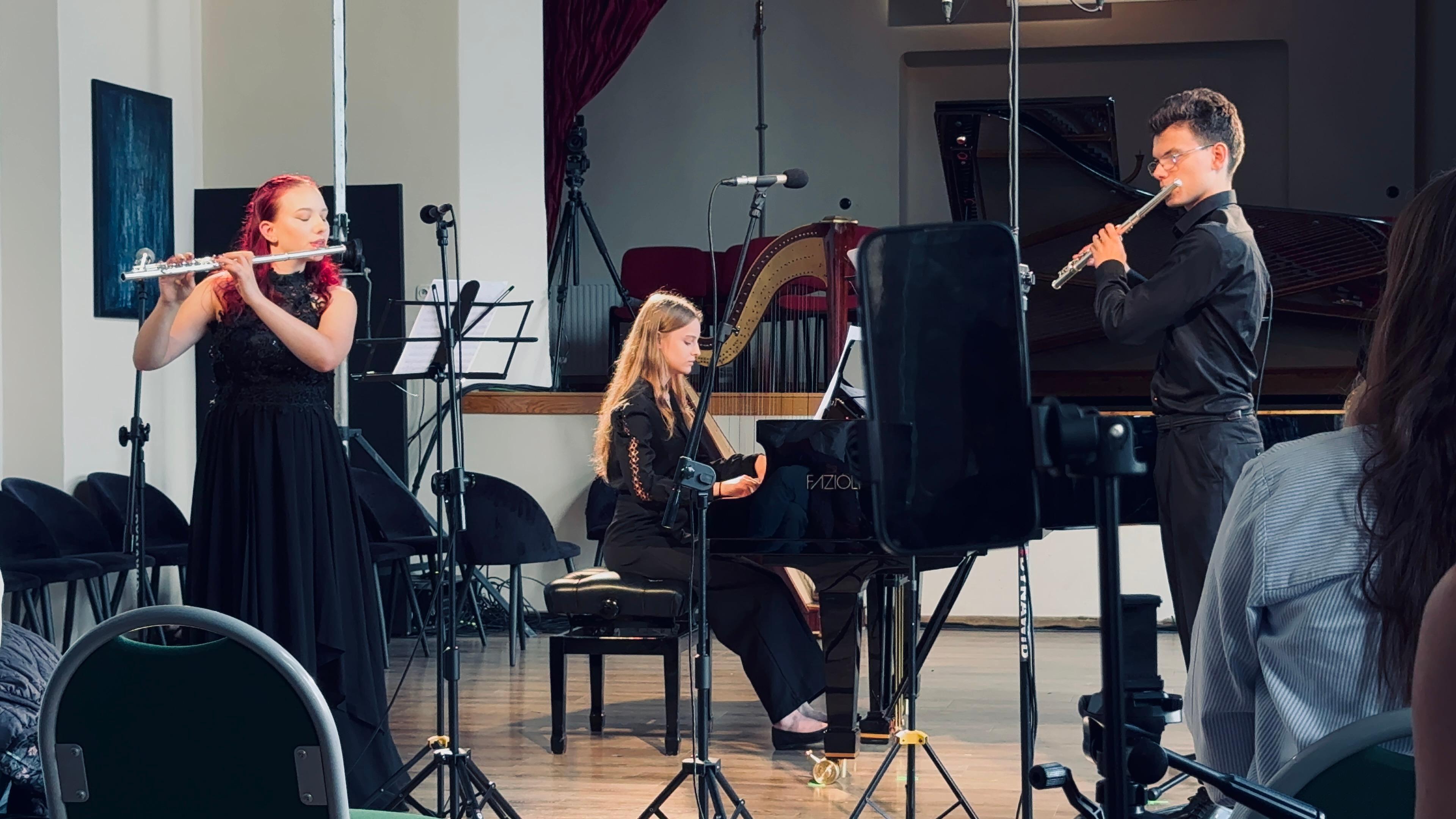 11 września 2024 roku grupa uczniów PSM II stopnia w Bochni wzięła udział w wyjeździe do Zakopanego na XVI Międzynarodowy Festiwal "Muzyka na Szczytach". W koncercie znakomicie reprezentowali naszą szkołę utalentowani uczniowie: Milena Kozłowska i Wojciech Świątek na fortepianie oraz Trio fletowe, w skład którego weszli Julia Kuźnar (fortepian), Joanna Suder (flet) i Szymon Klimek (flet). Ich występy, które odzwierciedlały wysoki poziom edukacji muzycznej w naszej szkole, spotkały się z entuzjastycznym przyjęciem. Dodatkową atrakcją wyjazdu było zwiedzanie Muzeum Tatrzańskiego, co pozwoliło uczniom lepiej poznać historię i kulturę regionu.