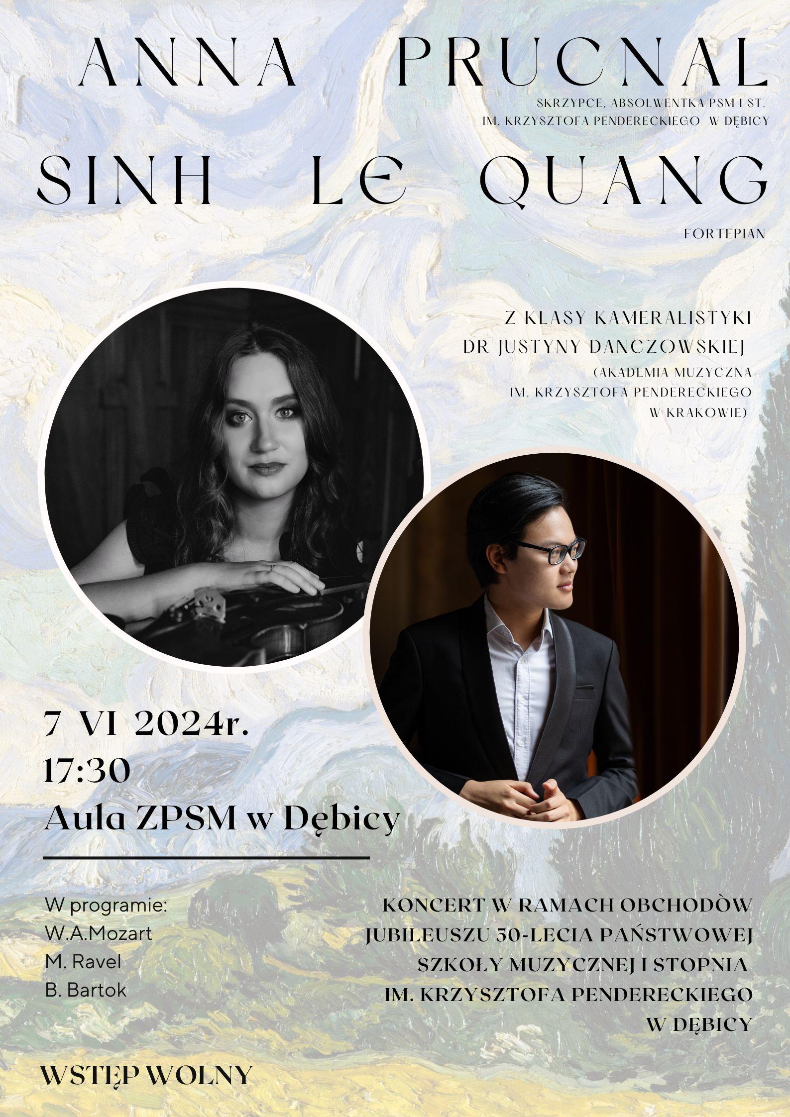 Anna Prucnal i Sinh Le Quang zapraszają na Koncert w ramach obchodów Jubileuszu 50-lecia PSM I st. im. Krzysztofa Pendereckiego w Dębicy - 7.06.2024r. 07.06.2024 Zdjęcia (1) Pokaż zdjęcie 1 z galerii.