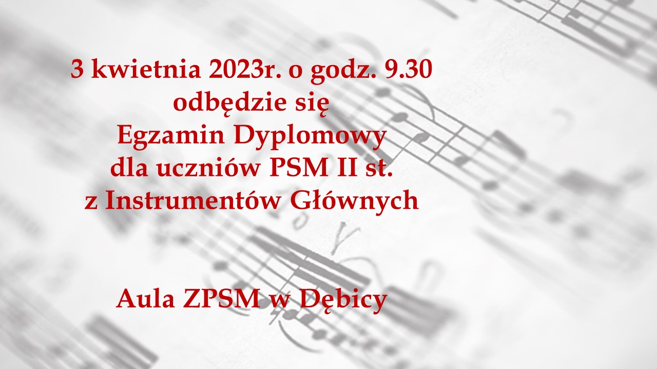 Egzamin Dyplomowy dla uczniów PSM II st. z Instrumentów Głównych