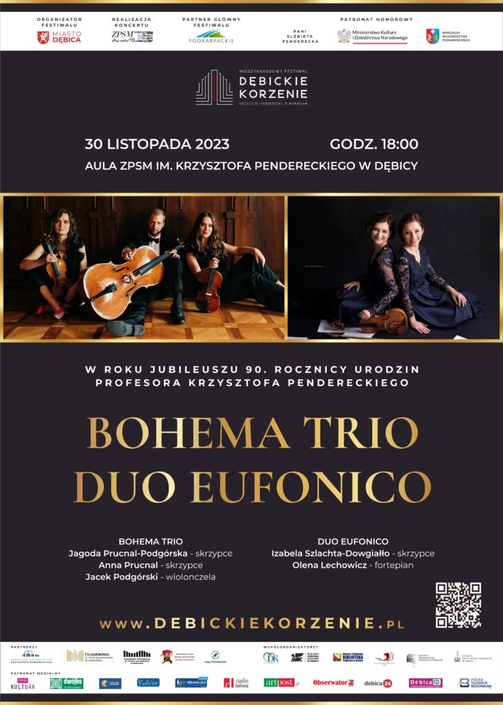 Koncert w wykonaniu BOHEMA TRIO oraz DUO EUFONICO w ramach Międzynarodowego Festiwalu "Dębickie Korzenie" Krzysztof Penderecki in Memoriam - 30.11.2023r. 27.11.2023 Zdjęcia (1) Pokaż zdjęcie 1 z galerii.