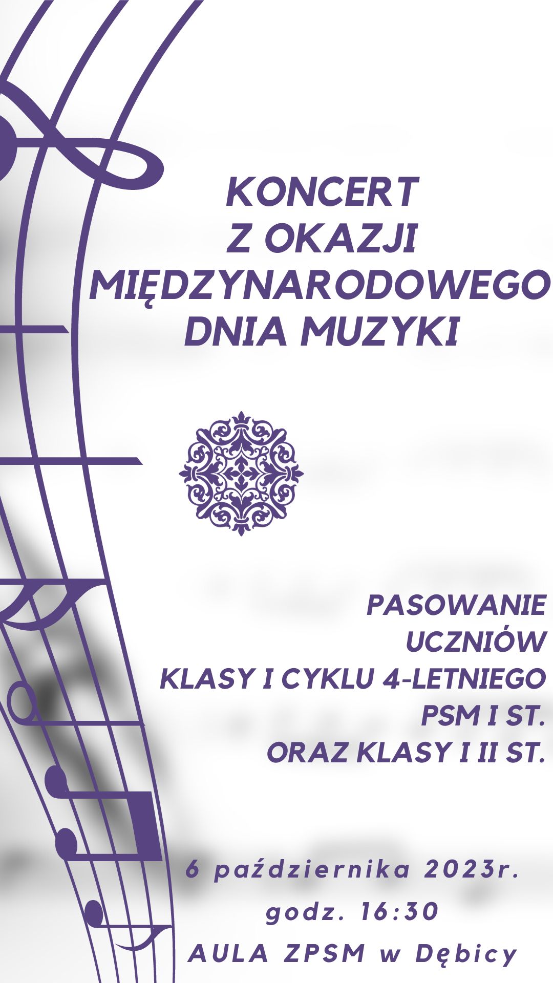 Koncert z okazji Międzynarodowego Dnia Muzyki oraz pasowanie uczniów klasy I c. 4-letniego i kl. I /II st. 28.09.2023 Zdjęcia (1) Pokaż zdjęcie 1 z galerii.