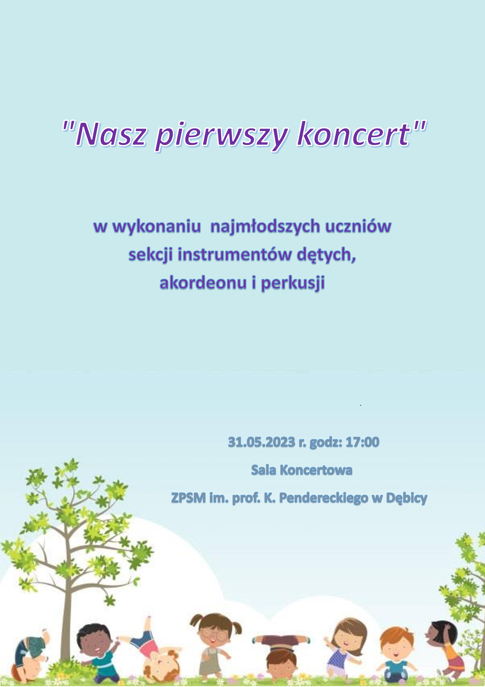 "Nasz pierwszy koncert" w wykonaniu najmłodszych uczniów sekcji instrumentów dętych, akordeonu i perkusji