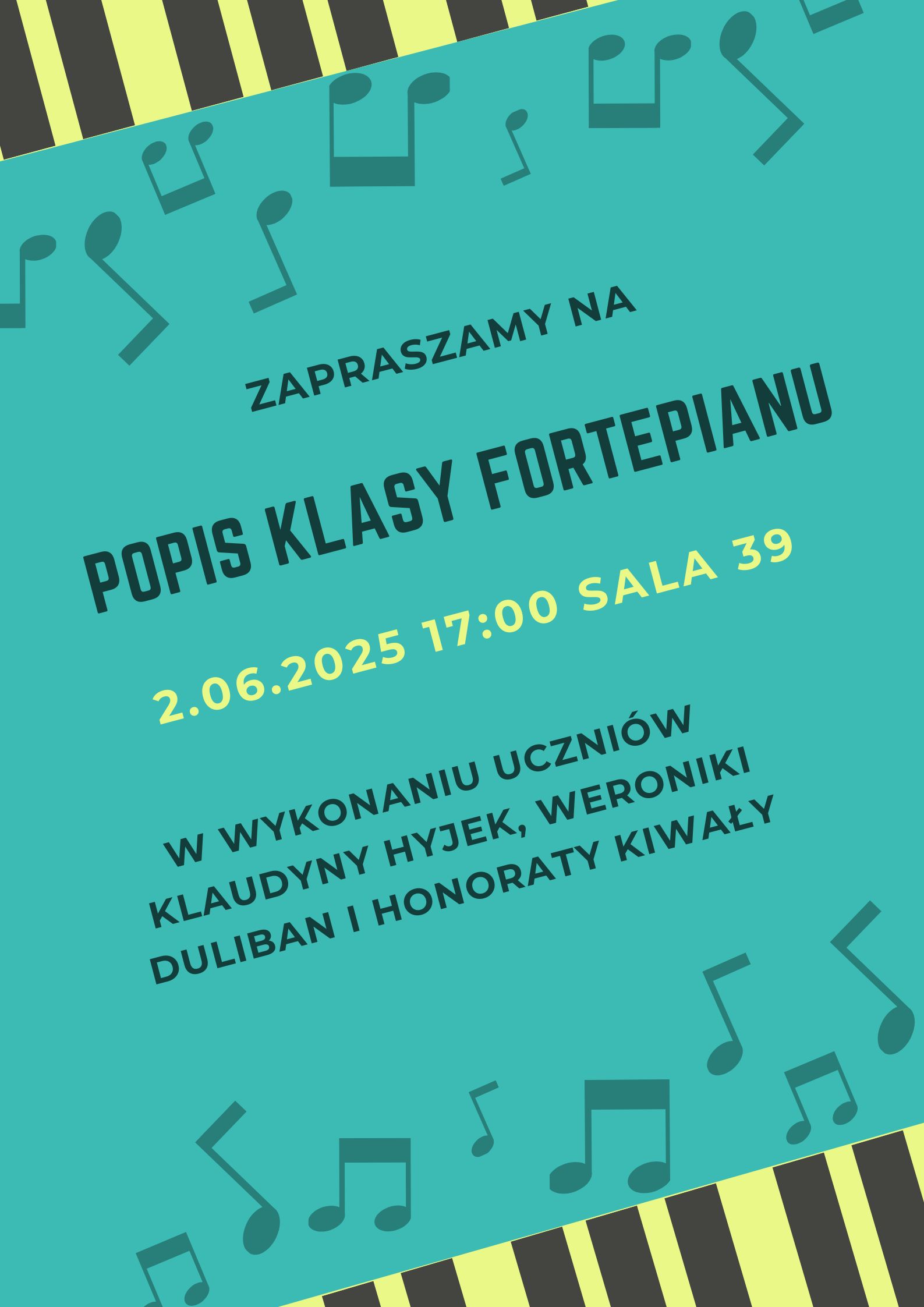 Popis klasy fortepianu w wykonaniu uczniów Klaudyny Hyjek, Weoniki Duliban i Honoraty Kiwały 26.05.2025 Zdjęcia (1) Pokaż zdjęcie 1 z galerii.