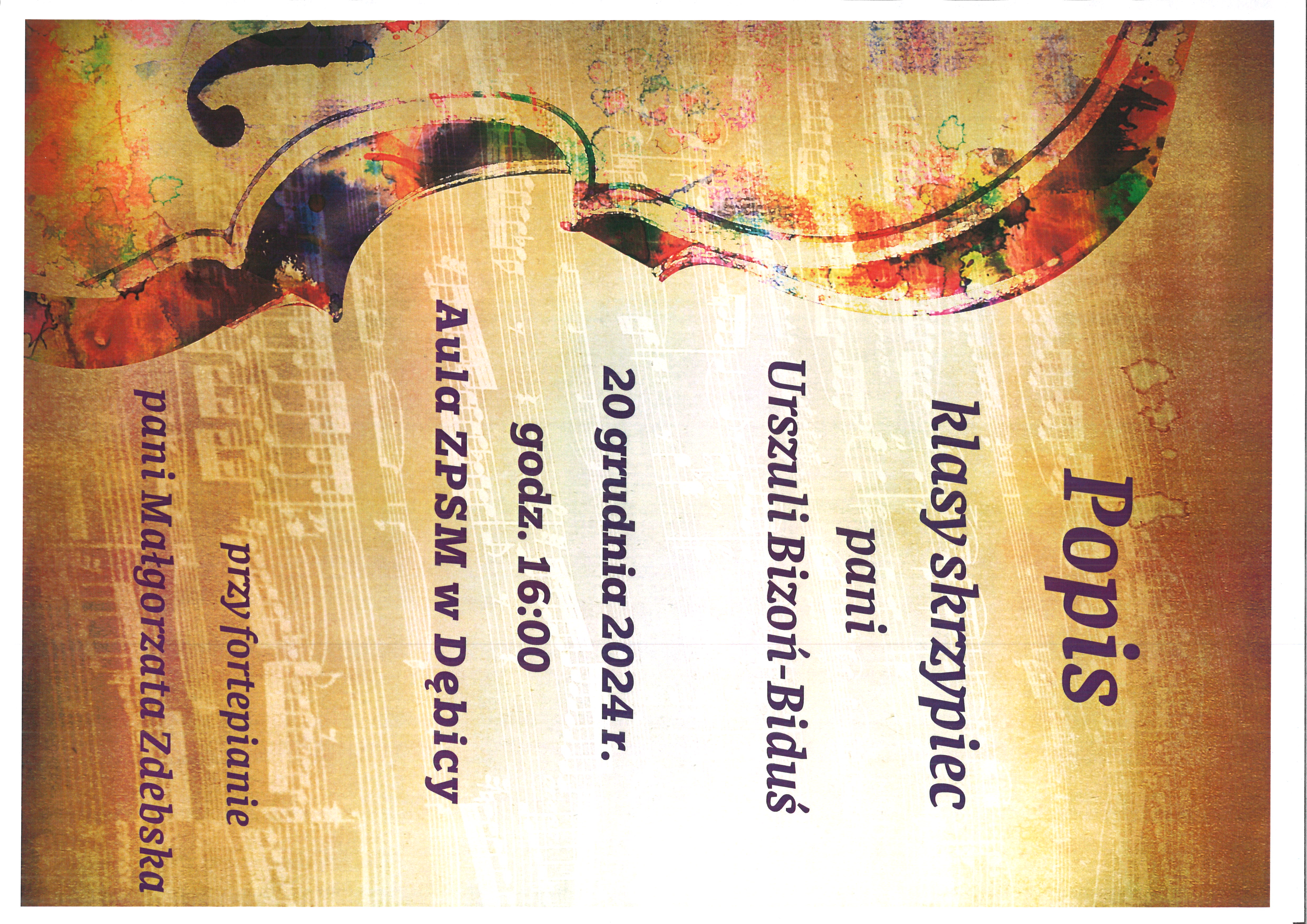 Popis klasy skrzypiec pani Urszuli Bizoń - Biduś - 20.12.2024r. 19.12.2024 Zdjęcia (1) Pokaż zdjęcie 1 z galerii.