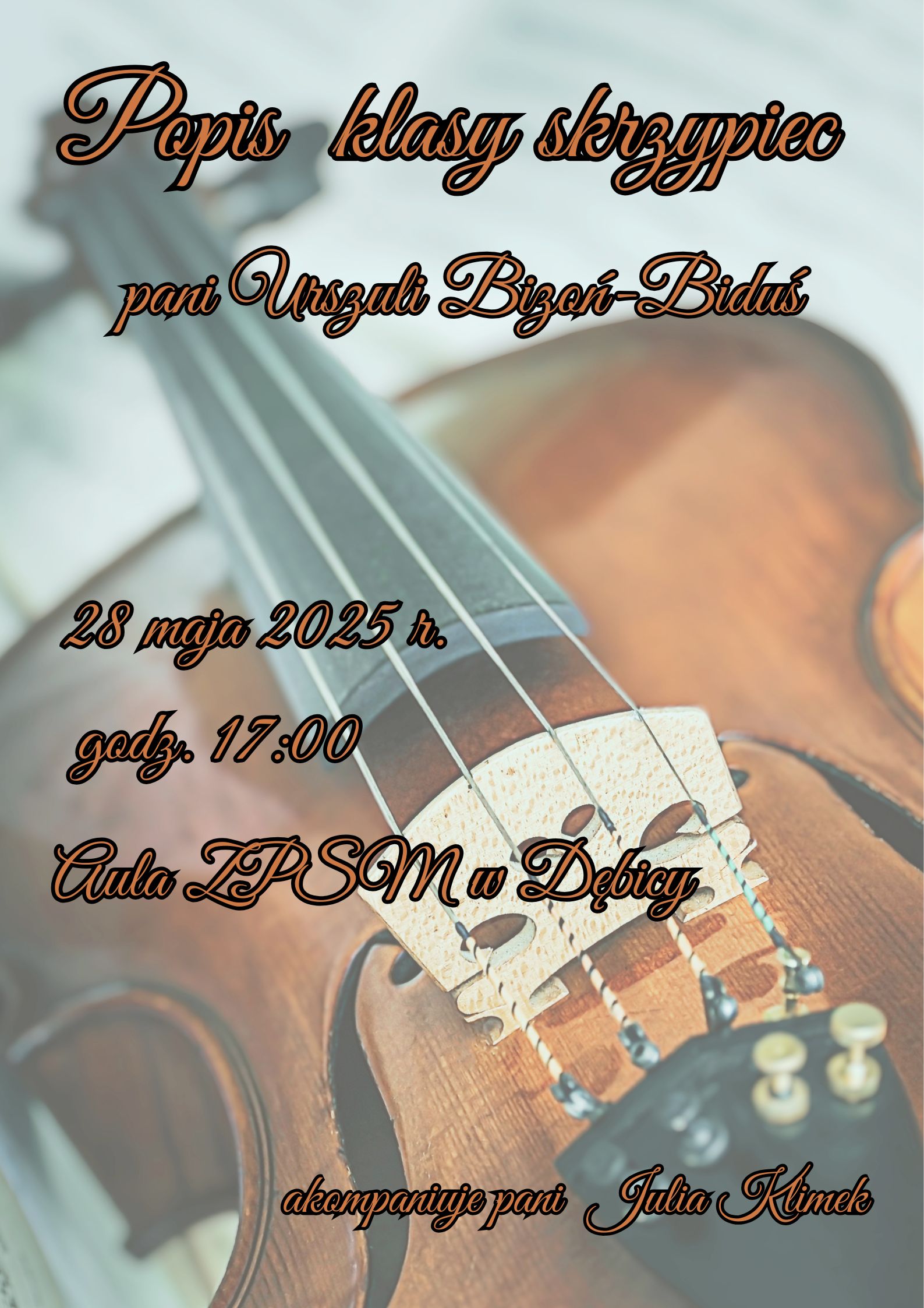 Popis klasy skrzypiec pani Urszuli Bizoń-Biduś - 28.05.2025r. 27.05.2025 Zdjęcia (1) Pokaż zdjęcie 1 z galerii.