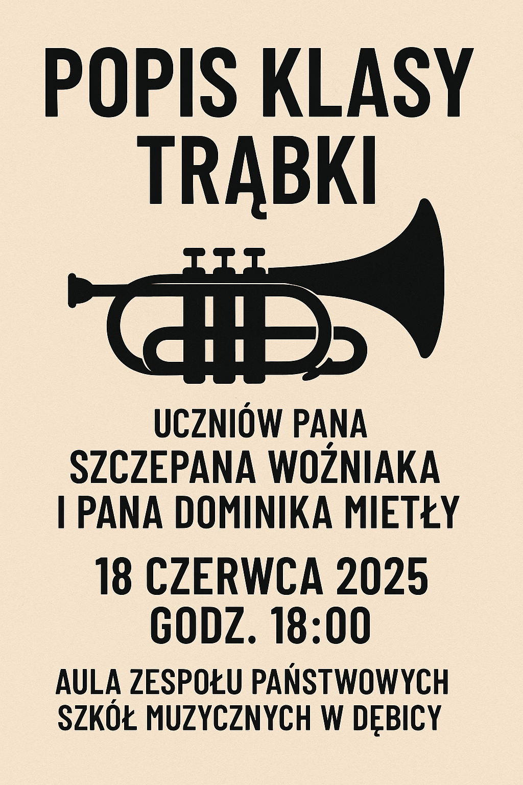 Popis klasy trąbki uczniów Szczepana Woźniaka i Dominika Mietły - 18.06.2025r. 17.06.2025 Zdjęcia (1) Pokaż zdjęcie 1 z galerii.