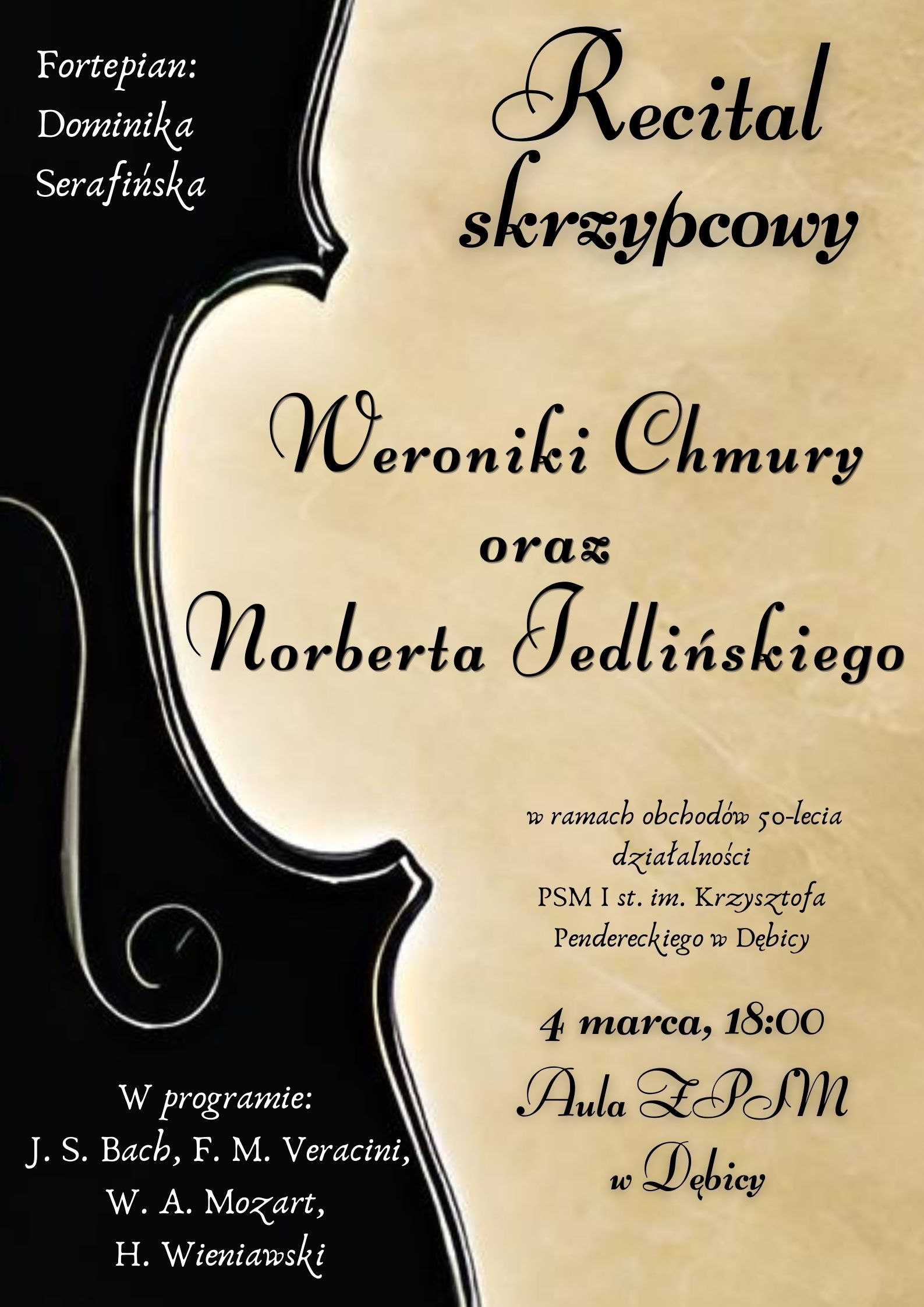 RECITAL SKRZYPCOWY Weroniki Chmury i Norberta Jedlińskiego - 4.03.2024r. 27.02.2024 Zdjęcia (1) Pokaż zdjęcie 1 z galerii.