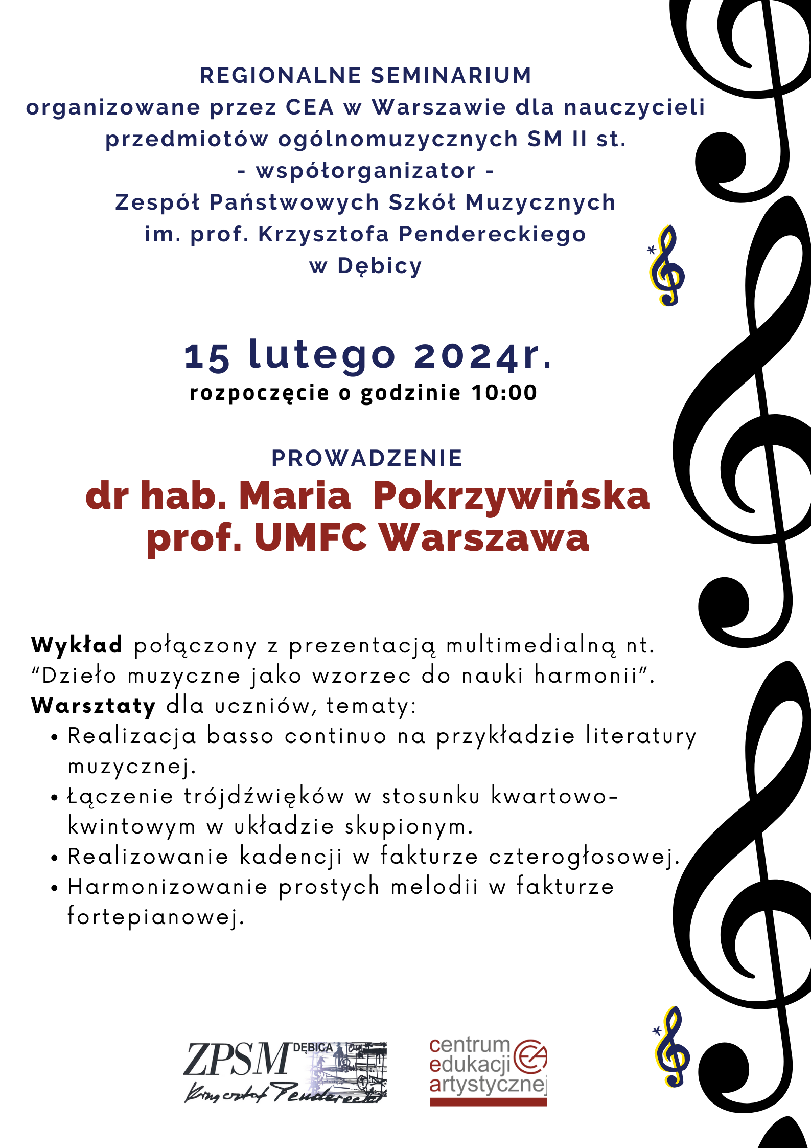 Regionalne Seminarium dla nauczycieli przedmiotów ogólnomuzycznych SM II st. - 15.02.2024r.