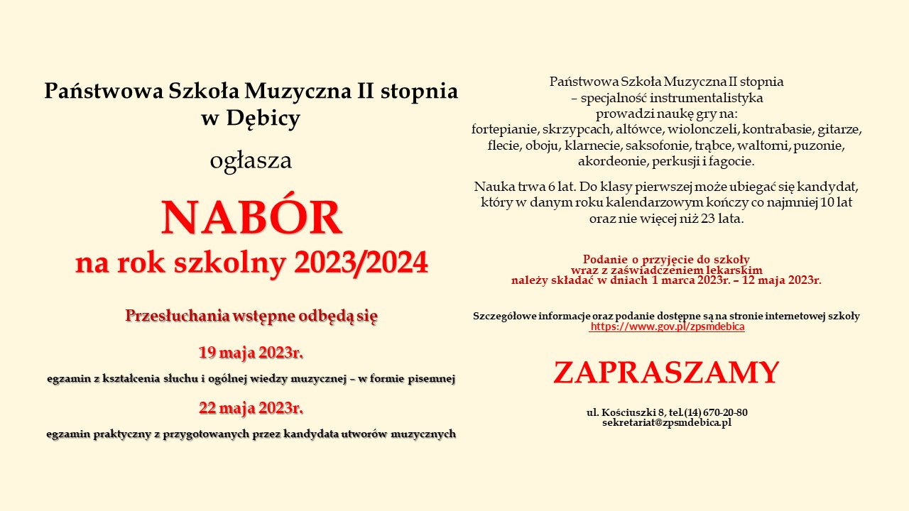 Rekrutacja do PSM II st. na rok szkolny 2023/2024
