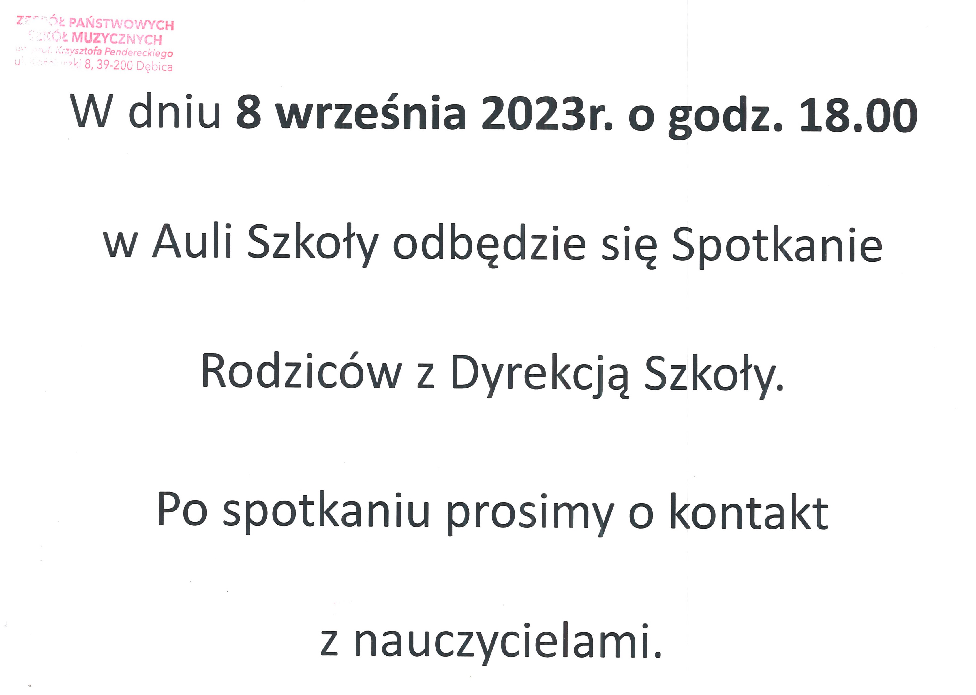 Spotkanie z Rodzicami - 8.09.2023r.