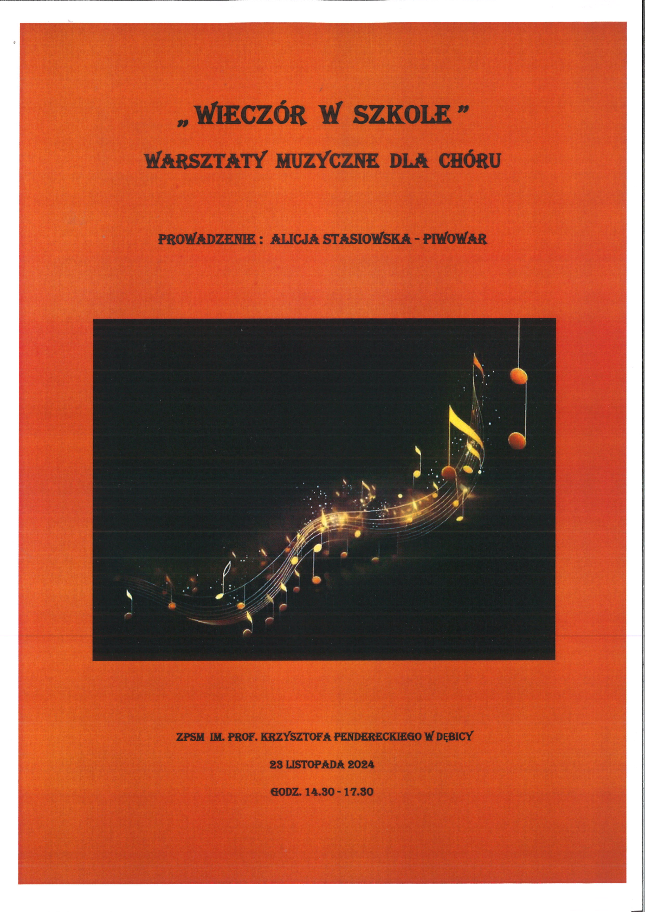 WIECZÓR W SZKOLE - Warsztaty Muzyczne dla CHÓRU - 23.11.2024r. 21.11.2024 Zdjęcia (1) Pokaż zdjęcie 1 z galerii.