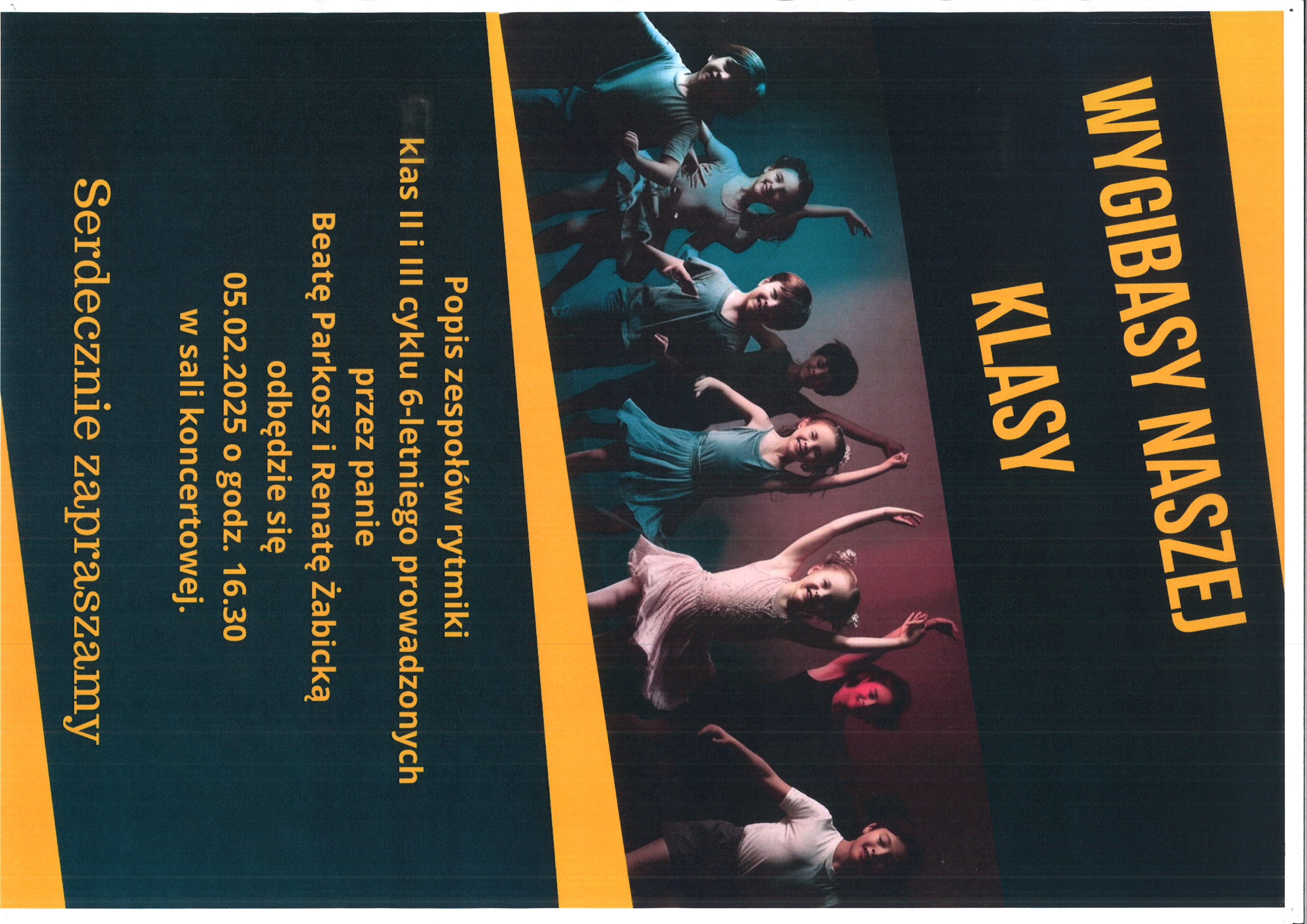WYGIBASY NASZEJ KLASY - Popis zespołów rytmiki klas II i III cyklu 6-letniego prowadzonych przez p. Beatę Parkosz i p. Renatę Żabicką - 5.02.2025r. 29.01.2025 Zdjęcia (1) Pokaż zdjęcie 1 z galerii.