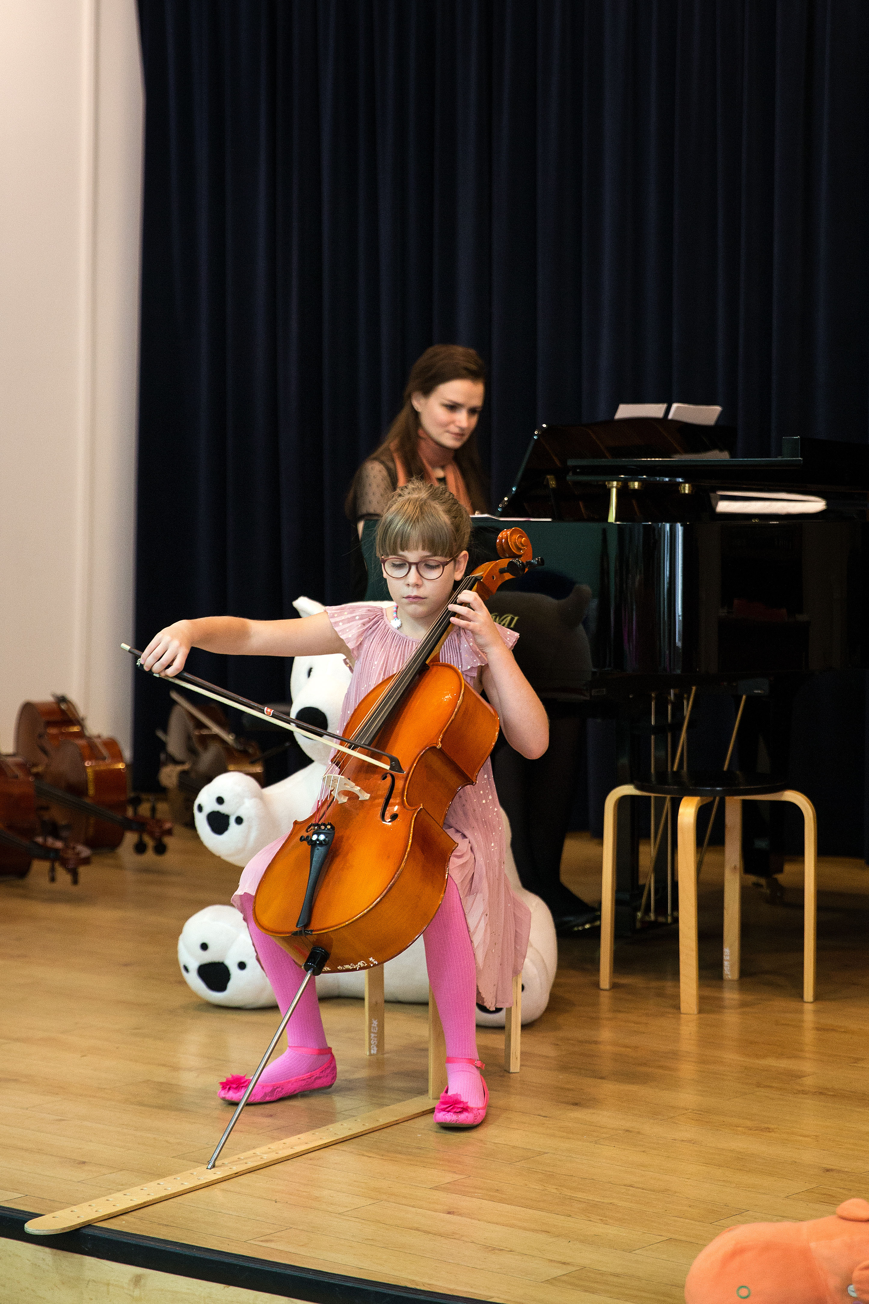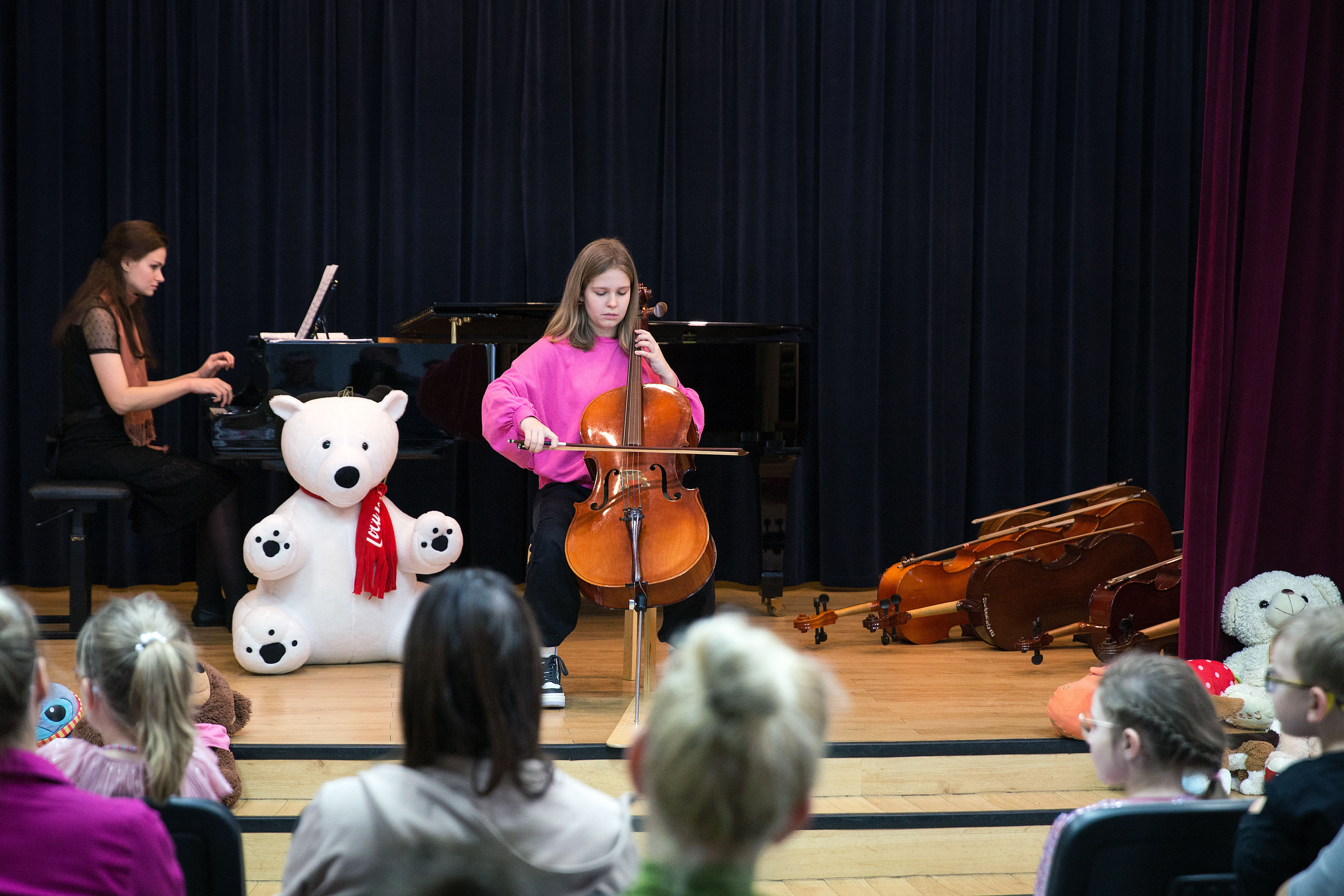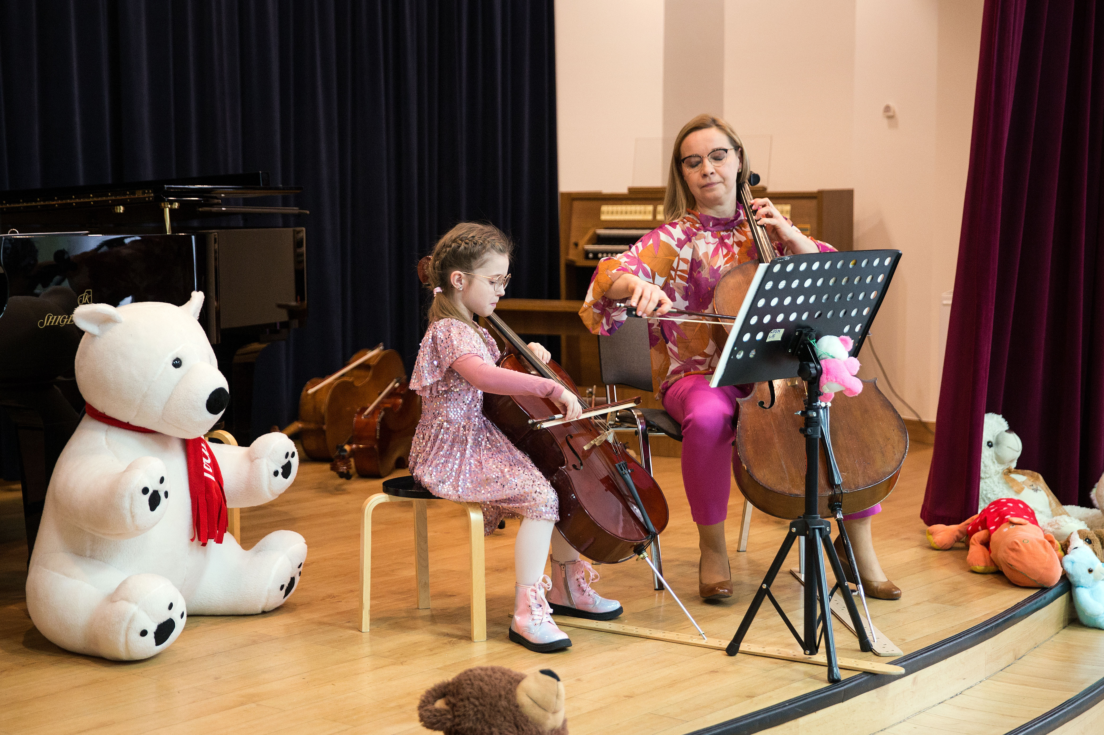 Fotorelacja z koncertu klasy wiolonczeli Moniki Łukawskiej z okazji Dnia Pluszowego Misia. Koncert odbył się 25 listopada 2023 roku w sali koncertowej ZPSM w Ełu.