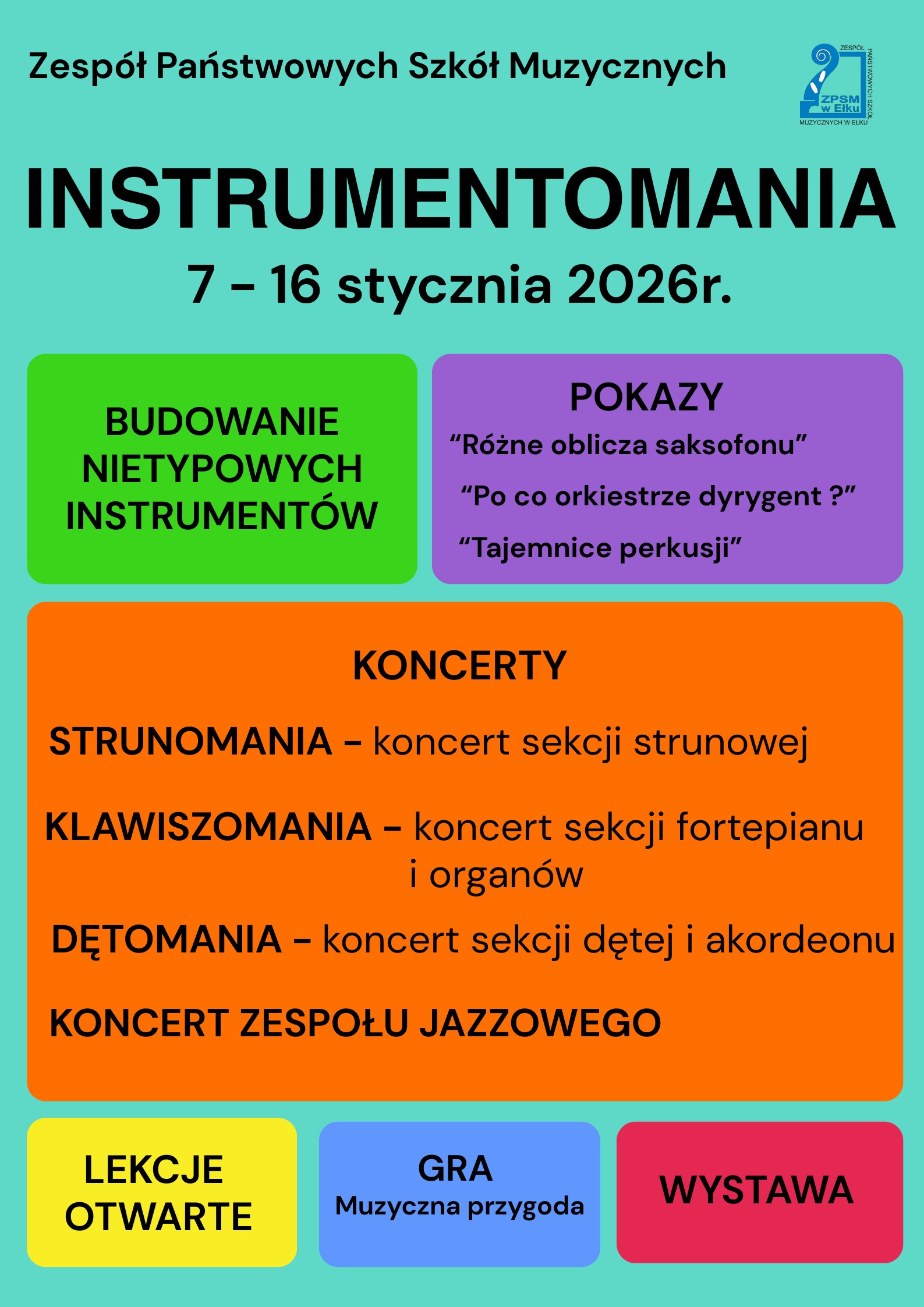 Nowy rok zaczynamy z przytupem. W dniach 7-16 stycznia 2026 r. realizujemy wyjątkowy projekt edukacyjny INSTRUMENTOMANIA - czyli naukę poprzez zabawę i mnóstwo muzycznych atrakcji.
