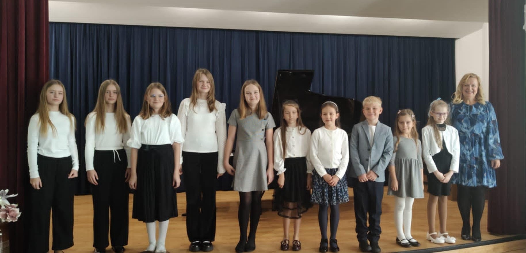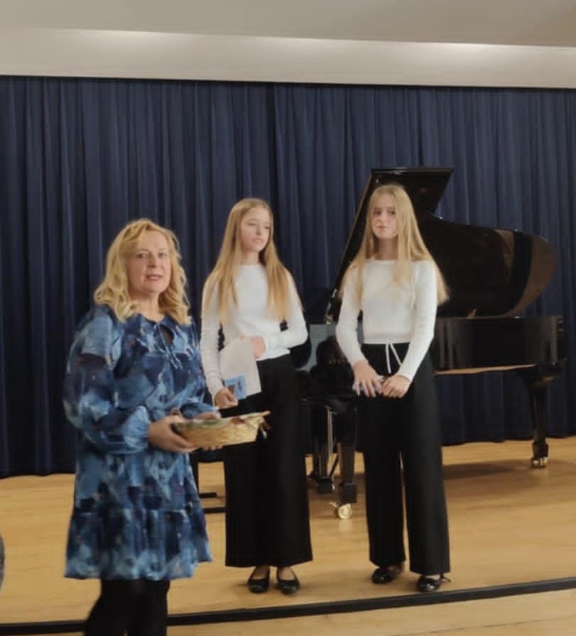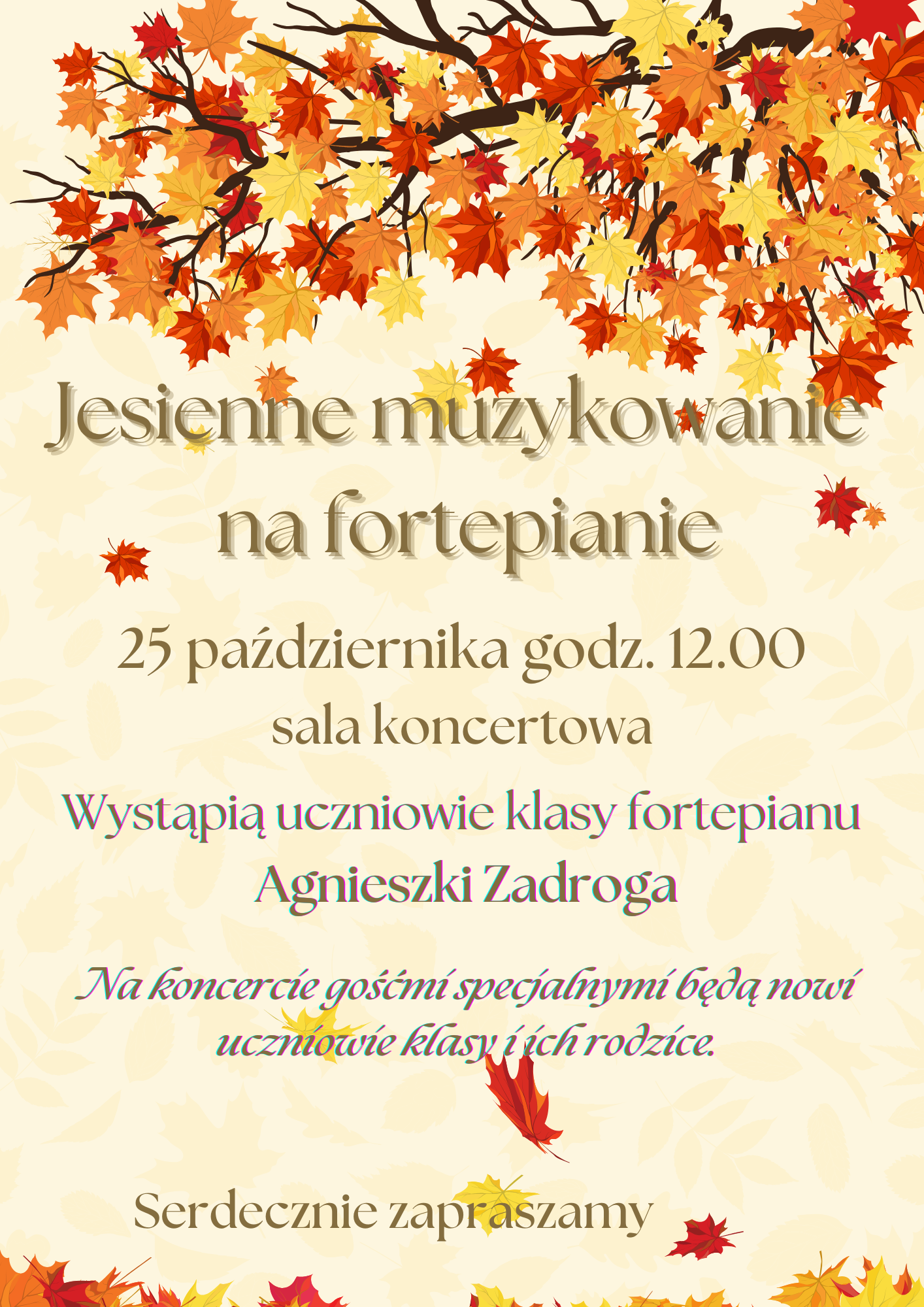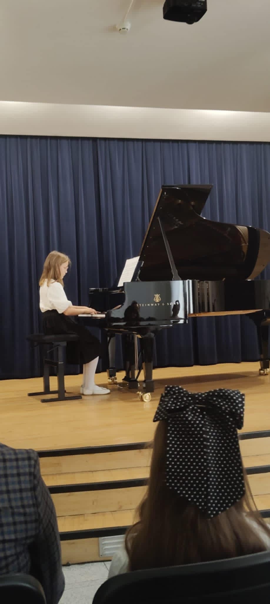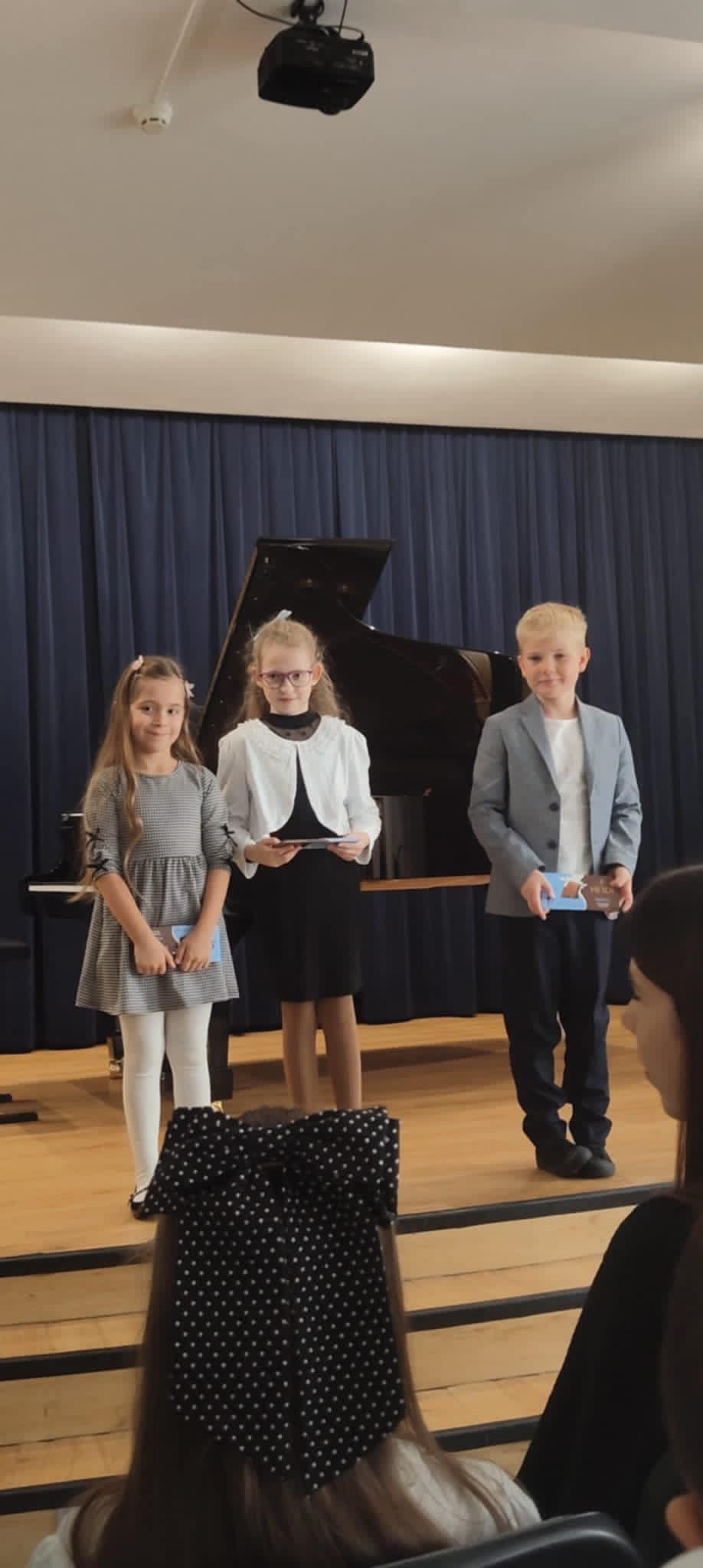 W sobotę, 25 października, uczniowie klasy fortepianu Agnieszki Zadroga spotkali się w sali koncertowej na jesiennym muzykowaniu grając na fortepianie. Wystąpili uczniowie od klasy pierwszej do szóstej PSM I stopnia. W gronie występujących obecne były dwie dziewczynki, dla których był to pierwszy w życiu występ na scenie szkoły muzycznej. Uczennice klasy pierwszej, Emma i Lena, wystąpiły jako pierwsze i zaprezentowały utwory na 4 ręce wspólnie ze swoją nauczycielką fortepianu. Następnie występowali uczniowie starsi grając solo na fortepianie. W koncercie wzięli udział oprócz pierwszoklasistek Emmy i Leny następujący uczniowie: Martyna, Lena, Janek, Ula, Marysia, Julka, Emilka i Karolina. Po koncercie wszyscy chętnie zasiedli do wspólnego stołu, na którym znalazły się smakołyki przygotowane przez rodziców uczniów. Był to wspólnie spędzony relaks, podczas którego nie zabrakło merytorycznych tematów na temat pomocy rodziców w muzycznej pracy domowej ucznia oraz wyboru zakupu instrumentu. Wspólne dzielenie się wiedzą okazało się najlepszym sposobem pozyskiwania ciekawych i przydatnych informacji, lepszym niż internet czy AI. Dziękuję moim uczniom za piękny koncert, rodzicom zaś za „smaczny” stół, zdjęcia i filmik z koncertu oraz wspieranie własnych uzdolnionych dzieci w ich muzycznym rozwoju.