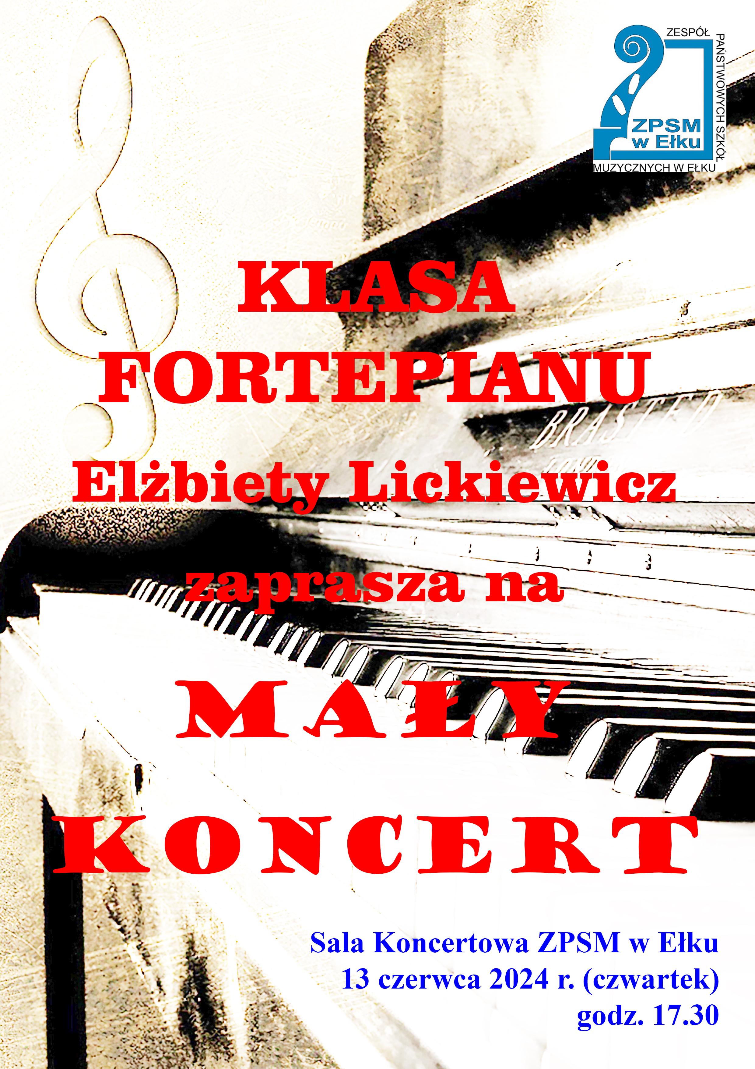 Zapraszamy na mały koncert klasy fortepianu Elżbiety Lickiewicz. Szczegóły na plakacie.