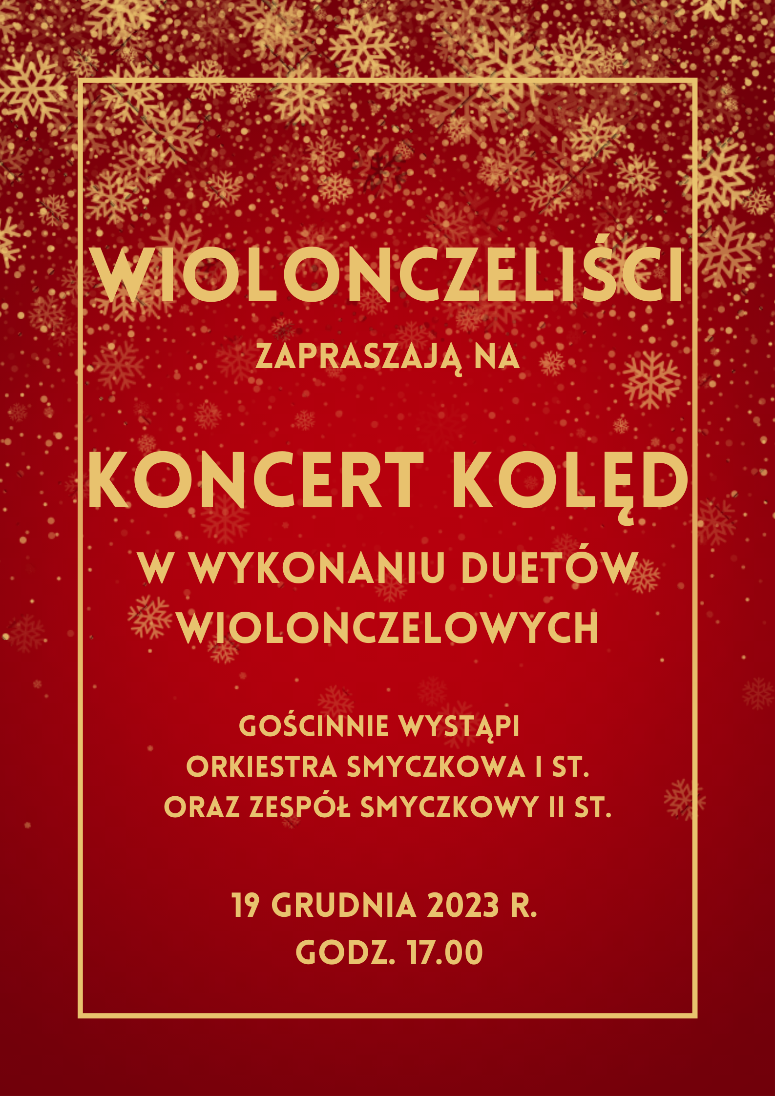 Koncert kolęd duetów wiolonczelowych 19 grudnia