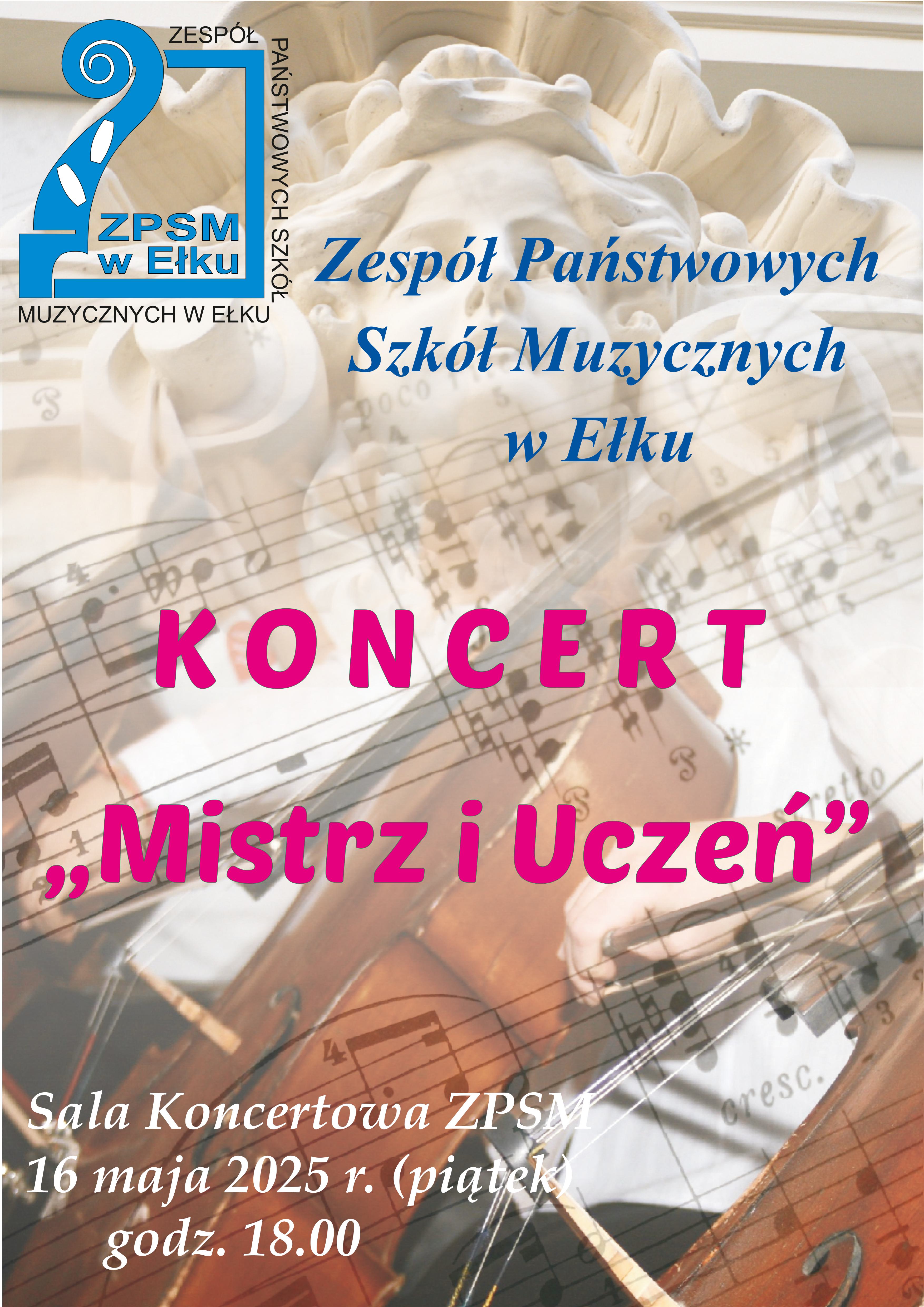 Zapraszamy na doroczny koncert pt. „Mistrz i Uczeń”, organizowany przez Zespół Państwowych Szkół Muzycznych w Ełku. Wydarzenie odbędzie się 16 maja 2025 r. o godz. 18:00.