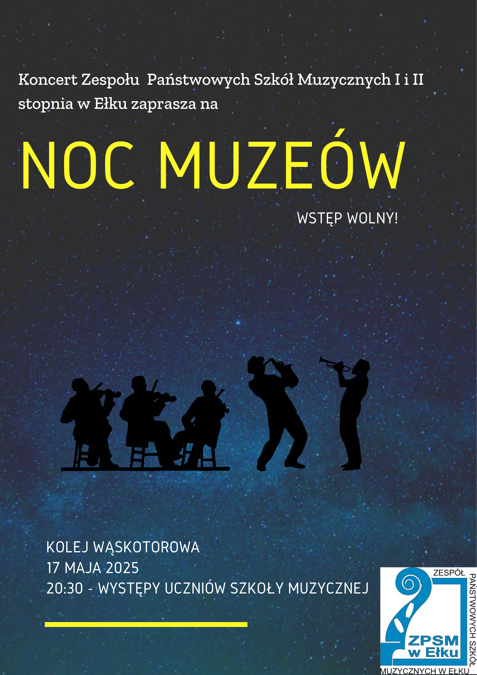 Zapraszamy na klimatyczny, wieczorowy koncert uczniów ZPSM I i II stopnia w Ełku z Okazji Nocy Muzeów. Odbędzie się już w ten piątek (17 maja) o godzinie 20:30 na kolei wąskotorowej w Ełku.