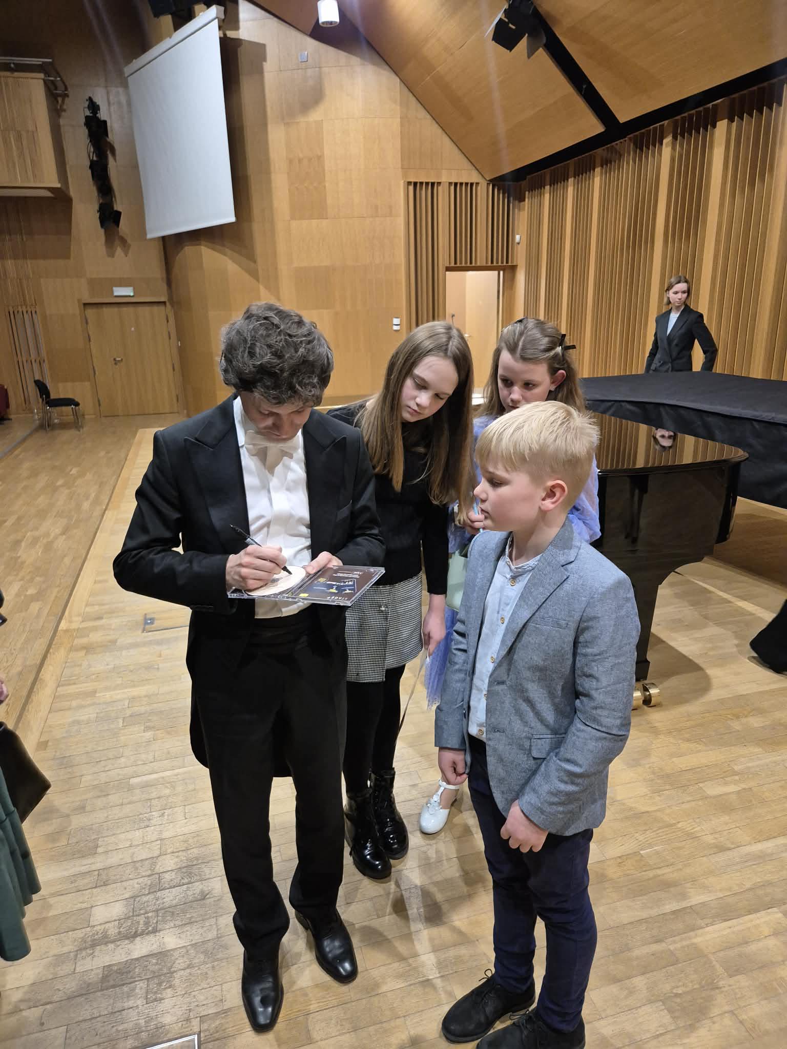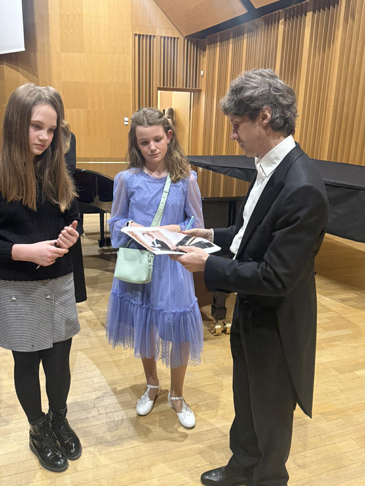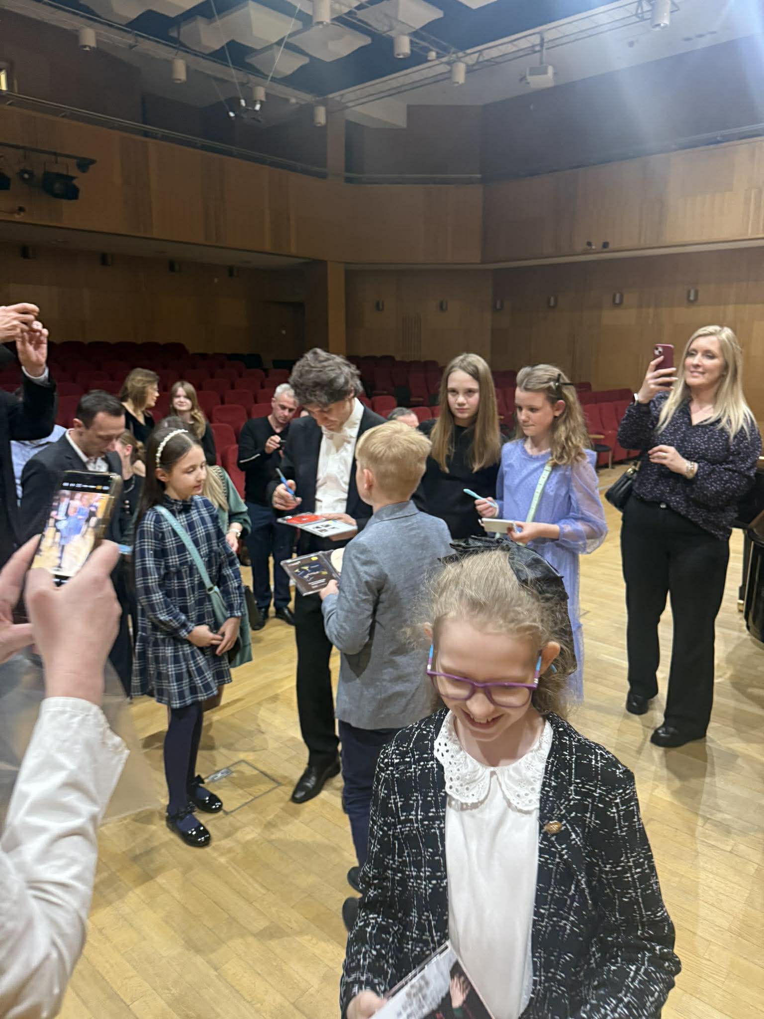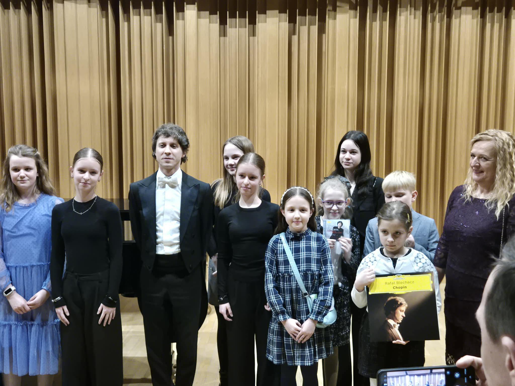 24 marca nasi uczniowie uczestniczyli w niezwykłym muzycznym wydarzeniu, które miało miejsce w Państwowej Szkole Muzycznej I i II stopnia w Suwałkach. Był to recital mistrzowski wybitnego polskiego pianisty, zdobywcy Grand Prix i wszystkich nagród specjalnych Międzynarodowego Konkursu Chopinowskiego w Warszawie w 2005 roku Rafała Blechacza. Pianista już po raz drugi odwiedził suwalską szkołę. Jego koncert miał charakter charytatywny i był wsparciem dla ucznia suwalskiej szkoły – Tobiasza w jego walce z chorobą. Na koncert wraz ze swoimi rodzicami pojechali uczniowie klasy fortepianu Agnieszki Zadroga. W pierwszej części koncertu pianista wykonał III Koncert fortepianowy c-moll op. 37 Ludwiga van Beethovena z towarzyszeniem drugiego fortepianu, na którym grał Maciej Wota. W drugiej części koncertu pianista Rafał Blechacz wykonał cztery Impromptus op. 90 Franciszka Schuberta, Balladę As-dur op. 47 i Scherzo cis-moll op. 39 Fryderyka Chopina. Po recitalu młodzi pianiści z ełckiej szkoły spotkali się z artystą, który podpisał płyty i zdjęcia, z którymi przyjechali ełccy goście oraz wykonano wiele pamiątkowych zdjęć. Było to dla wszystkich wielkie przeżycie artystyczne, które warto na długo zostawić w swej pamięci i czerpać z niego siłę na dalsze dni, pracę przy instrumencie i walkę z chorobą.