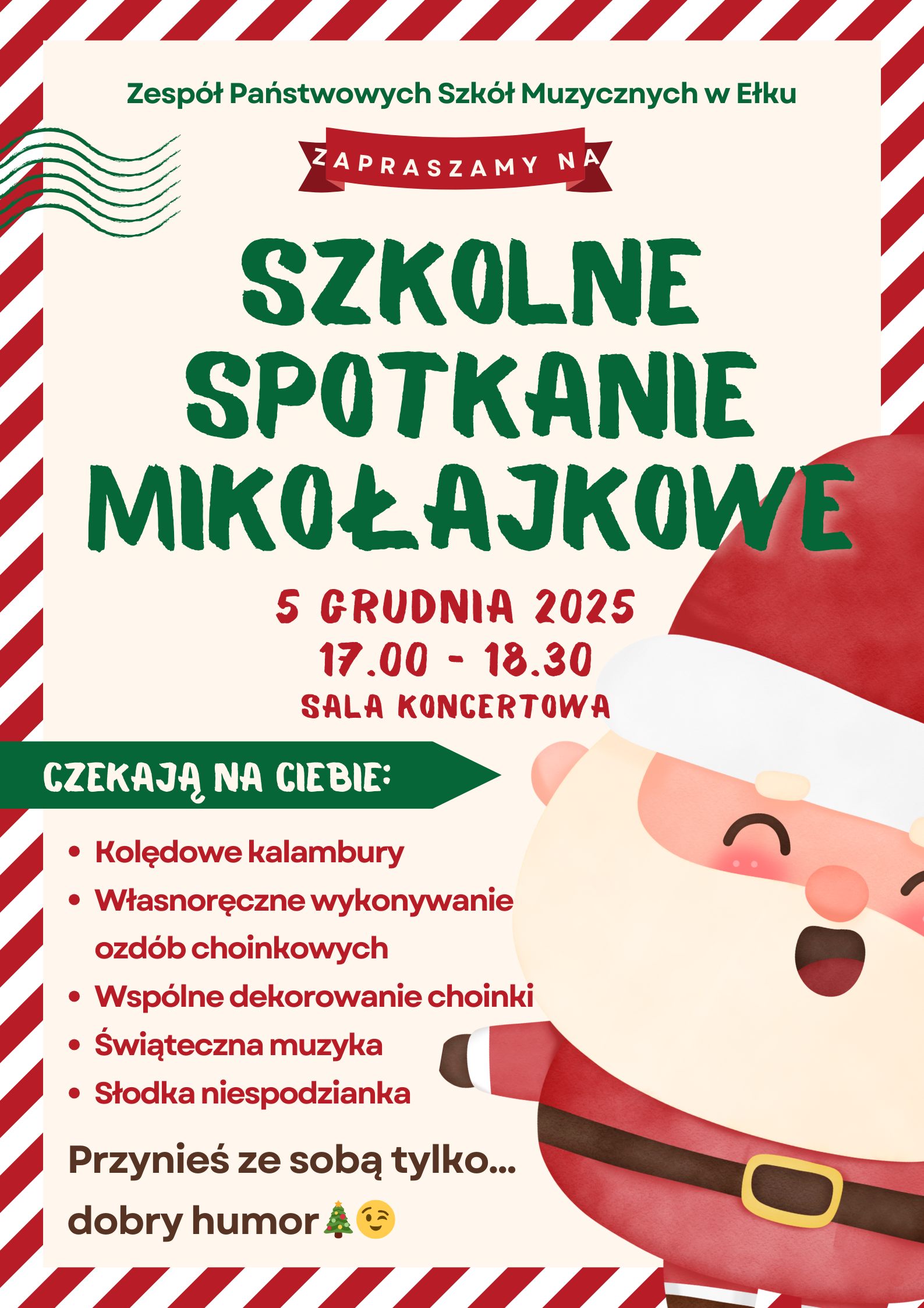 Serdecznie zapraszamy na Szkolne Spotkanie Mikołajkowe - 5 grudnia o godz. 17.00.