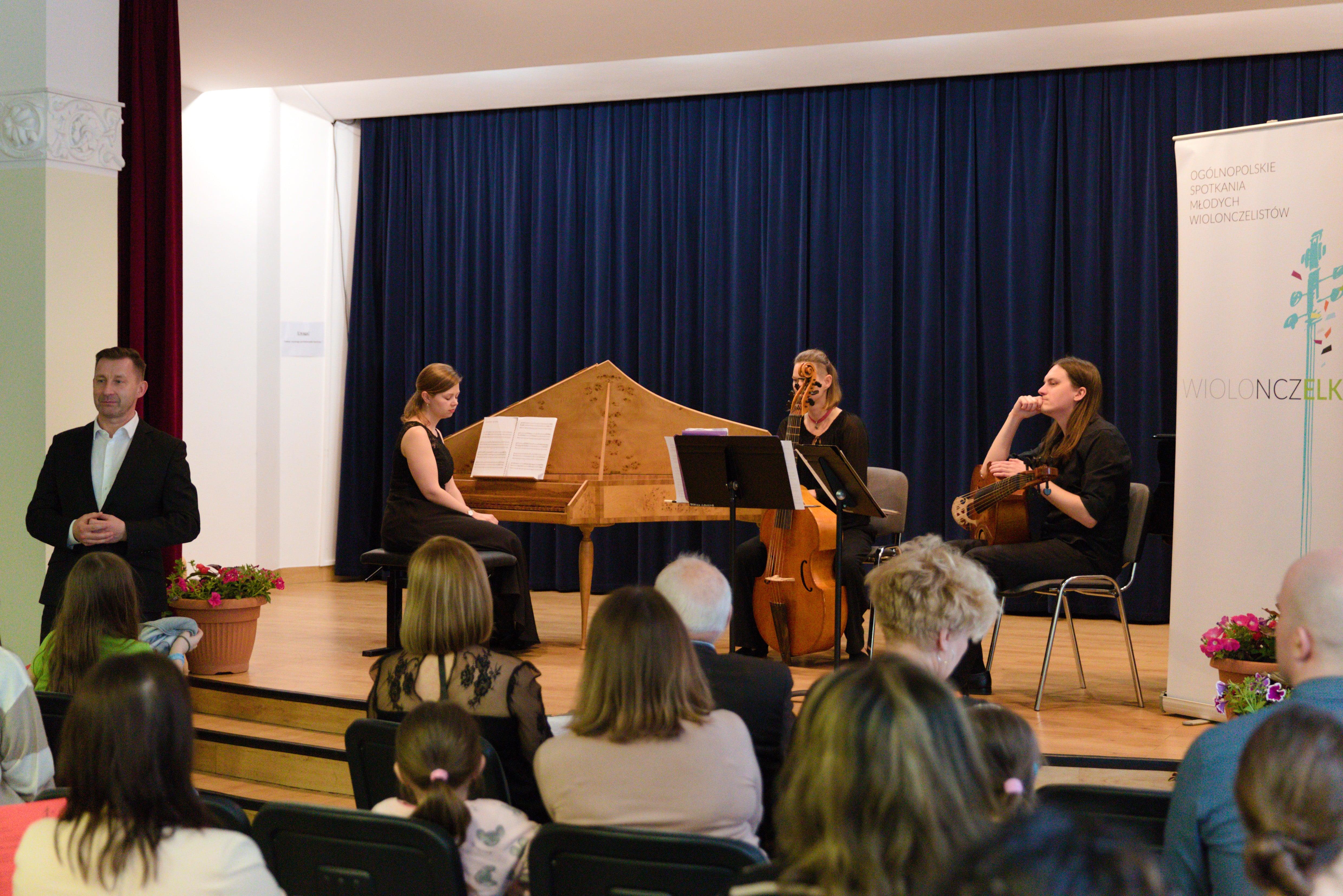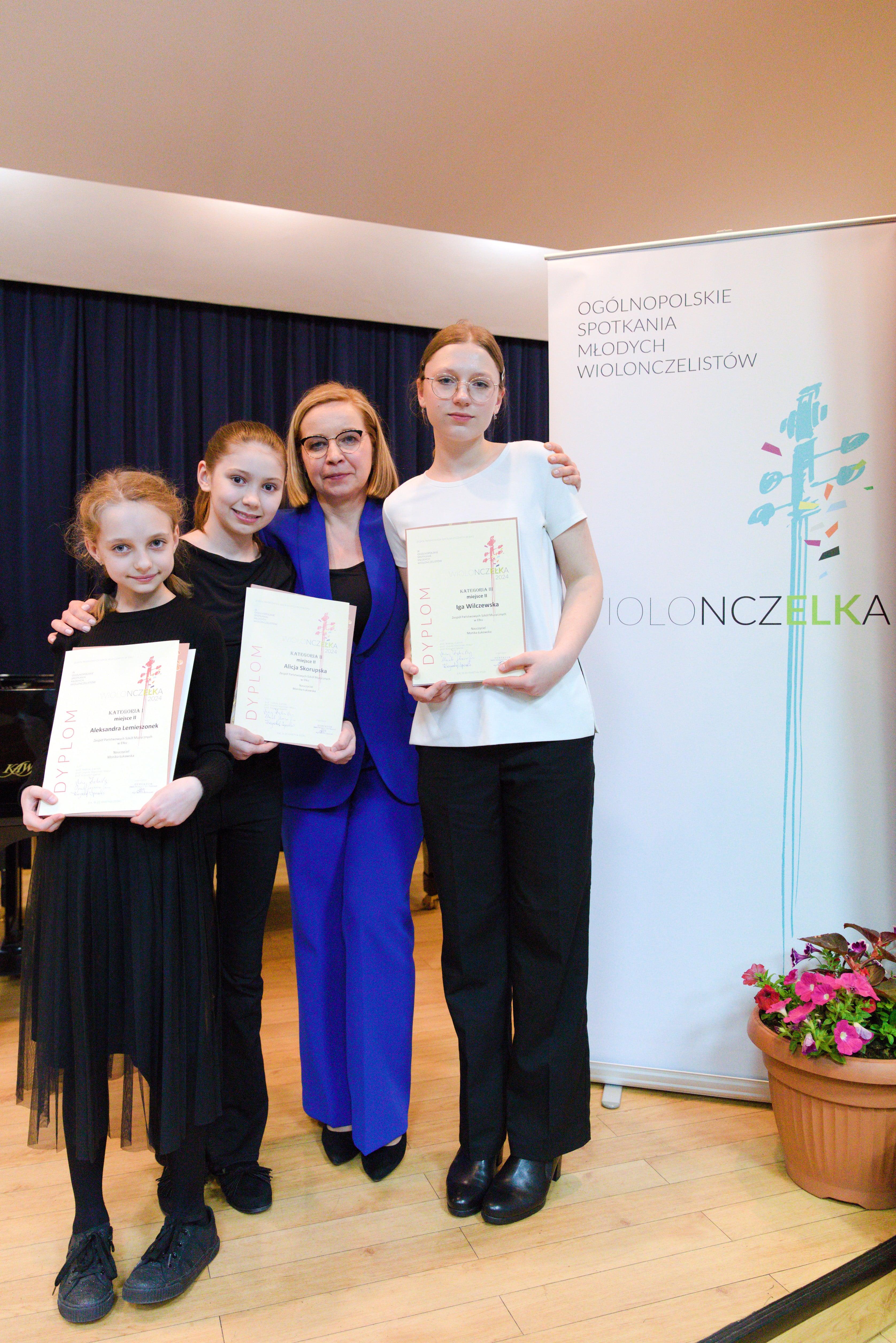 18 - 20 kwietnia 2024 r. odbyło się w naszej szkole trzydniowe święto wiolonczeli. IX Ogólnopolskie Spotkania Młodych Wiolonczelistów to jedyne w północno-wschodnim regionie Polski tego typu przedsięwzięcie. Jest to konkurs przeznaczony dla uczniów szkół muzycznych I i II st. z całej Polski. Swój udział zgłosiło prawie 80-sięciu młodych adeptów sztuki wiolonczelowej m.in. z Warszaw, Krakowa, Gdańska, Bydgoszczy, Torunia, Olsztyna, Białegostoku, i oczywiście z Ełku. W jury przesłuchań zasiedli wybitni polscy wiolonczeliści: prof. Andrzej Zieliński z Uniwersytetu Muzycznego w Warszawie oraz prof. Krzysztof Sperski z Akademii Muzycznej w Gdańsku, prof. Urszula Marciniec – Mazur z Akademii Muzycznej we Wrocławiu.