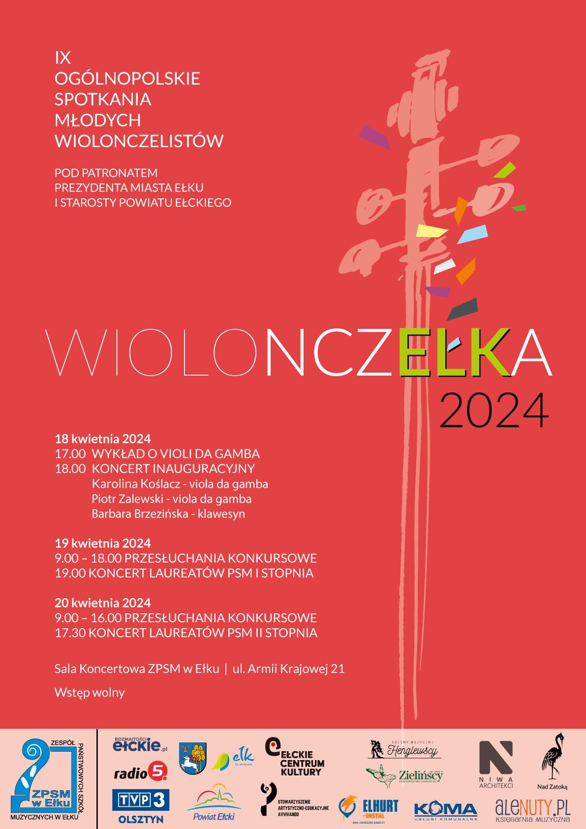 IX Ogólnopolskie Spotkania Młodych Wiolonczelistów wiolonczELKa 2024r. pod patronatem Prezydenta Miasta Ełku i Starosty Powiatu Ełckiego