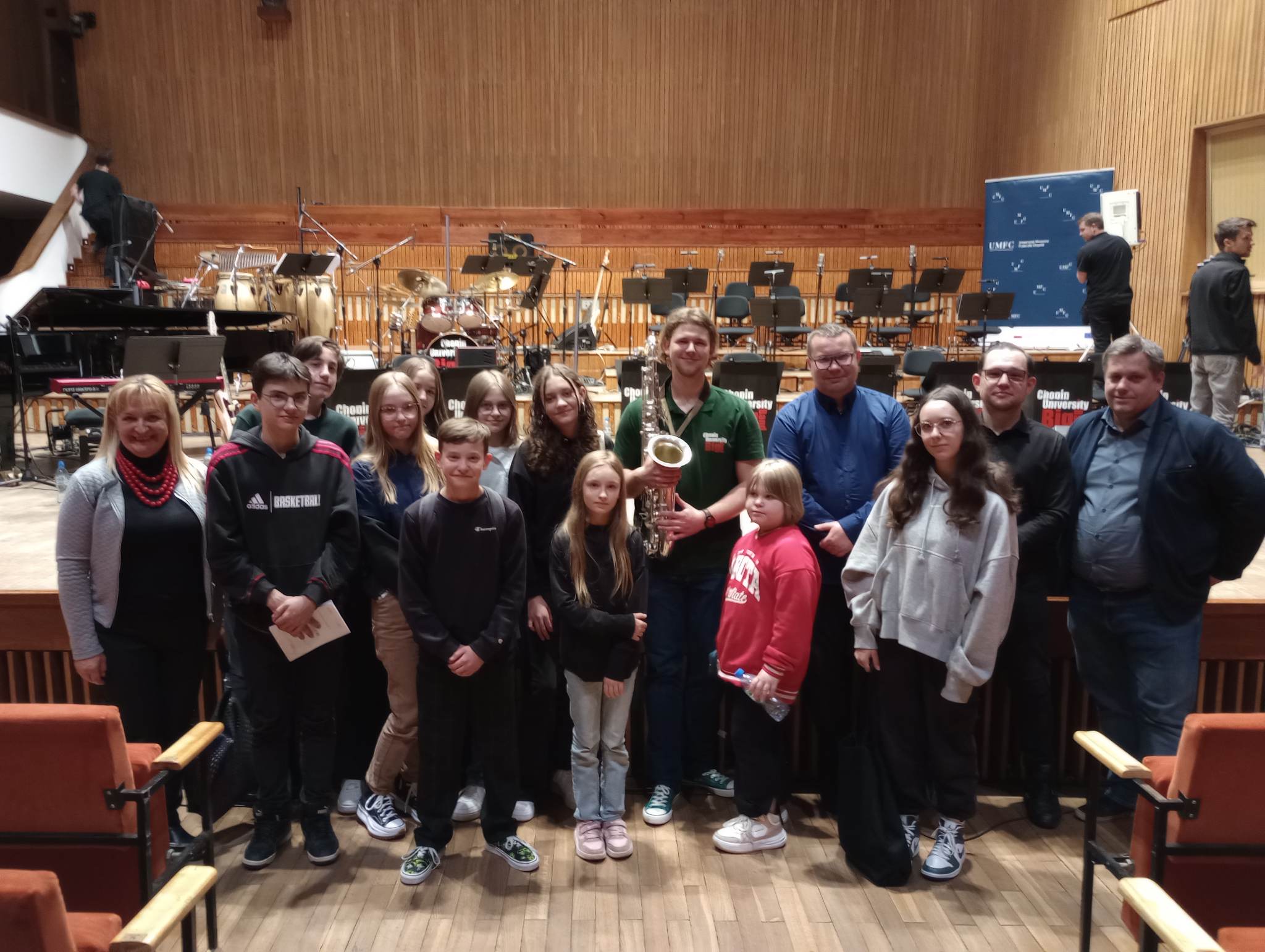 Potem udaliśmy się do Uniwersytetu Muzycznego Fryderyka Chopina, gdzie wysłuchaliśmy występu pod tytułem ,,To i owo bigbandowo”, wykonywanego przez CHOPIN UNIVERSITY BIG BAND. Najbardziej spodobał nam się utwór Glenn Miller ,,Pensylvania 6-5000”. Do big-bandu należy absolwent naszej szkoły Kamil Maciorowski, którego mogliśmy usłyszeć na scenie. Atmosfera była luźna i przyjemna. Wszyscy byli zadowoleni. Po koncercie spotkaliśmy znanego youtubera Janka Dąbrowskiego, który także był z nami na sali. Po całym dniu atrakcji wróciliśmy do Ełku. Podróż minęła spokojnie, wszyscy dobrze się bawili. Myślę ze to niezapomniana wycieczka i z chęcią chcielibyśmy ją powtórzyć.