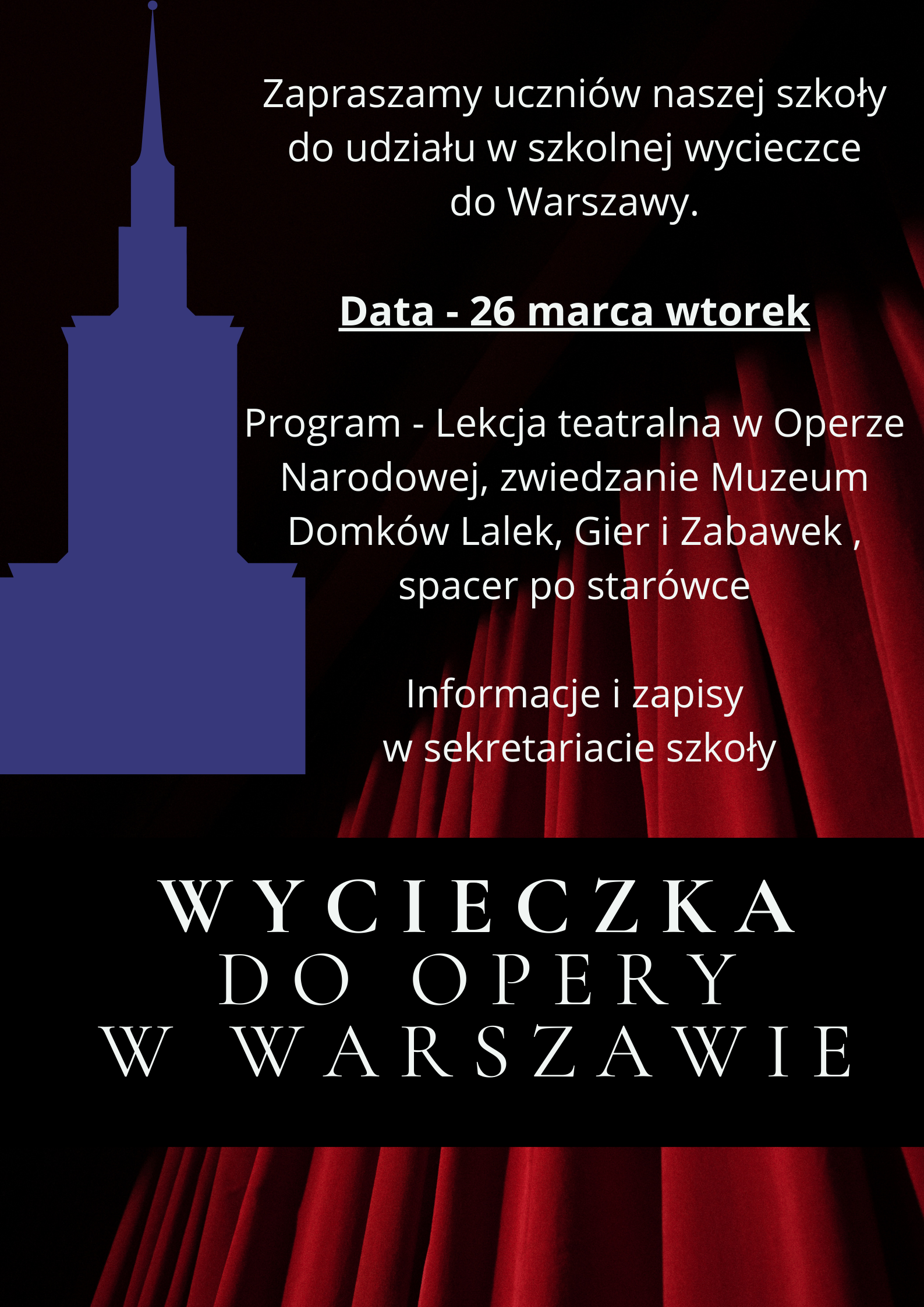 Zapraszamy uczniów na wycieczkę do Warszawy, która odbędzie się 26 marca.