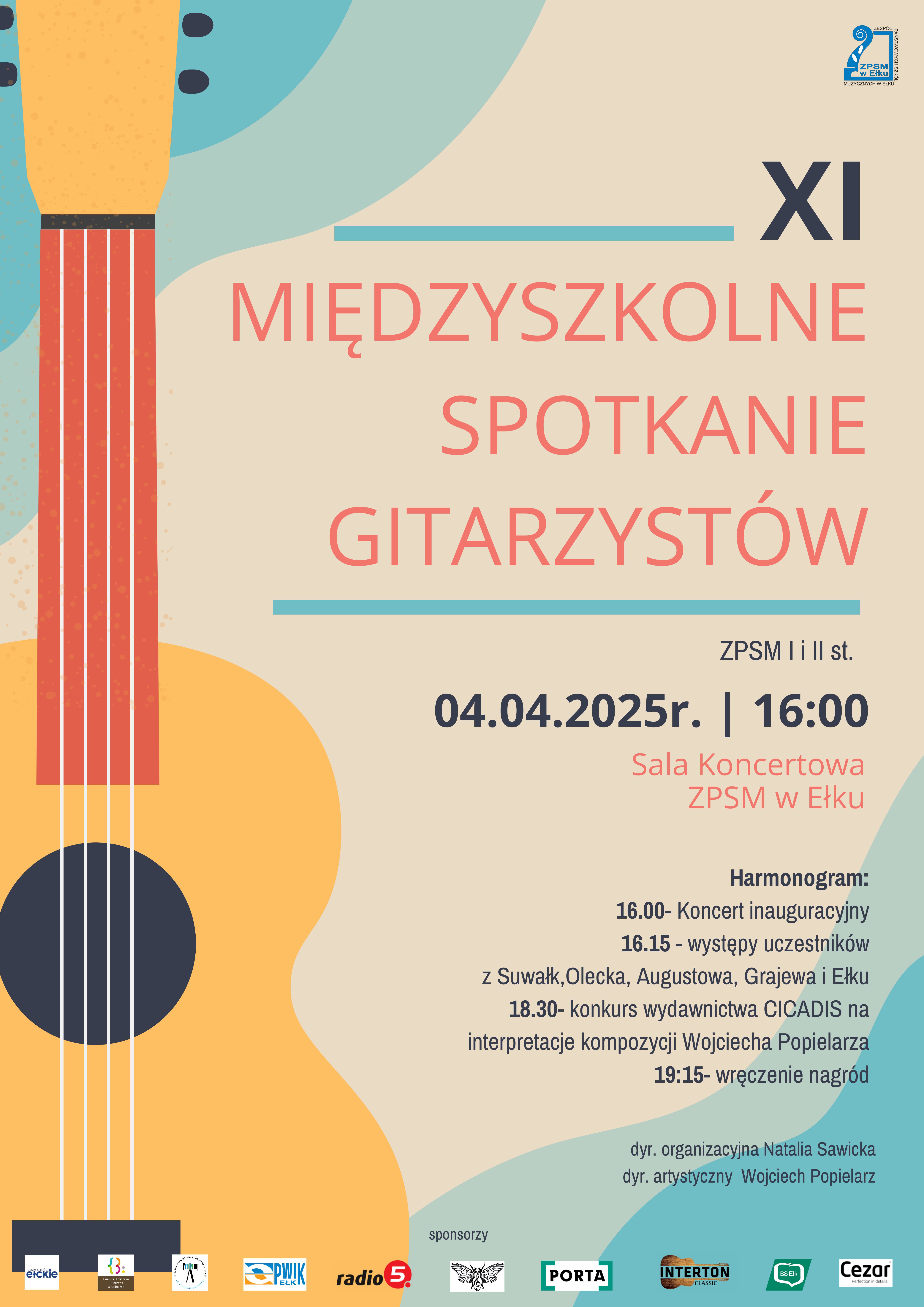 Zapraszamy na XI Międzyszkolne Spotkanie Gitarzystów, które odbędzie się 4 kwietnia 2025 roku o godz. 16.00 w ZPSM w Ełku.