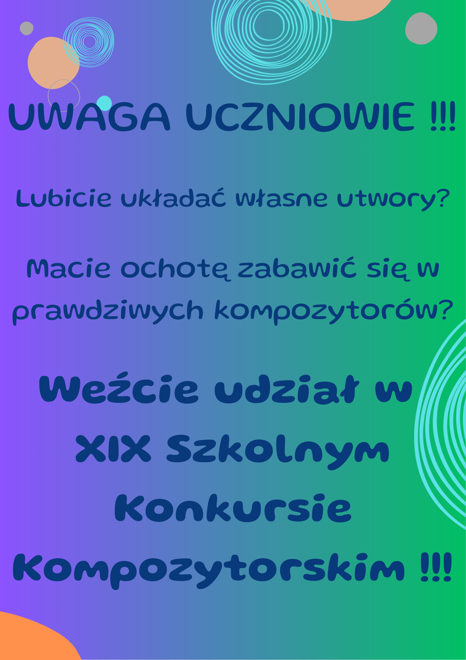 Serdecznie zapraszamy do udziału w XIX Szkolnym Konkursie Kompozytorskim.