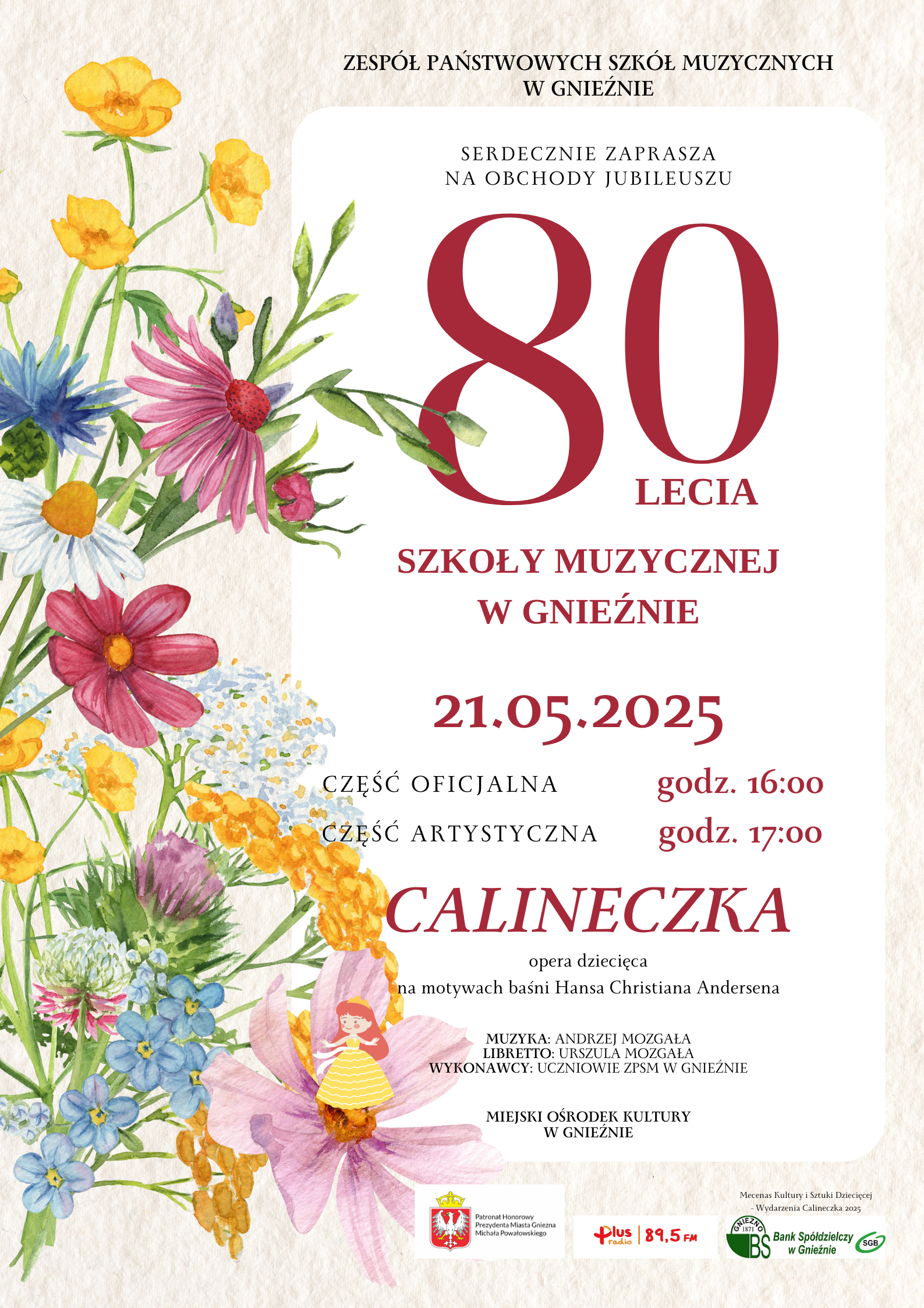 W związku z rocznicą Milenium Koronacji Królewskich i 80-lecia Szkoły Muzycznej w Gnieźnie postanowiliśmy uczcić to dużą formą muzyczną - operą dziecięcą. Przedstawienie "Calineczka", na motywach baśni Hansa Christiana Andersena, odbędzie się 21.05.2025 w MOK-u. Całość w wykonaniu uczniów i nauczycieli ZPSM w Gnieźnie. Zapraszamy!
