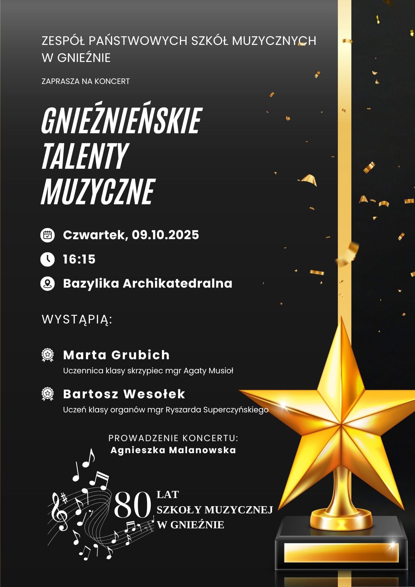 09 października 2025 roku w Bazylice Archikatedralnej odbył się koncert w ramach cyklu „Gnieźnieńskie talenty muzyczne”.