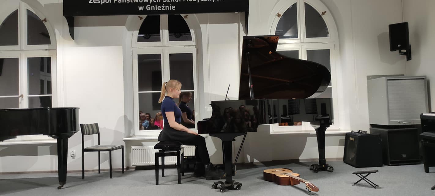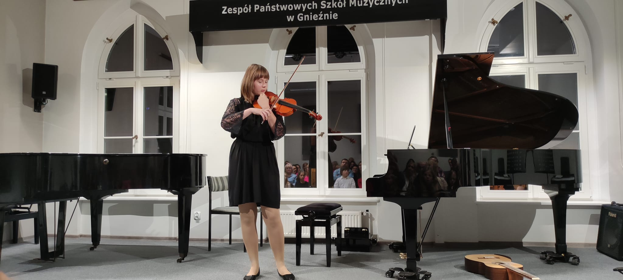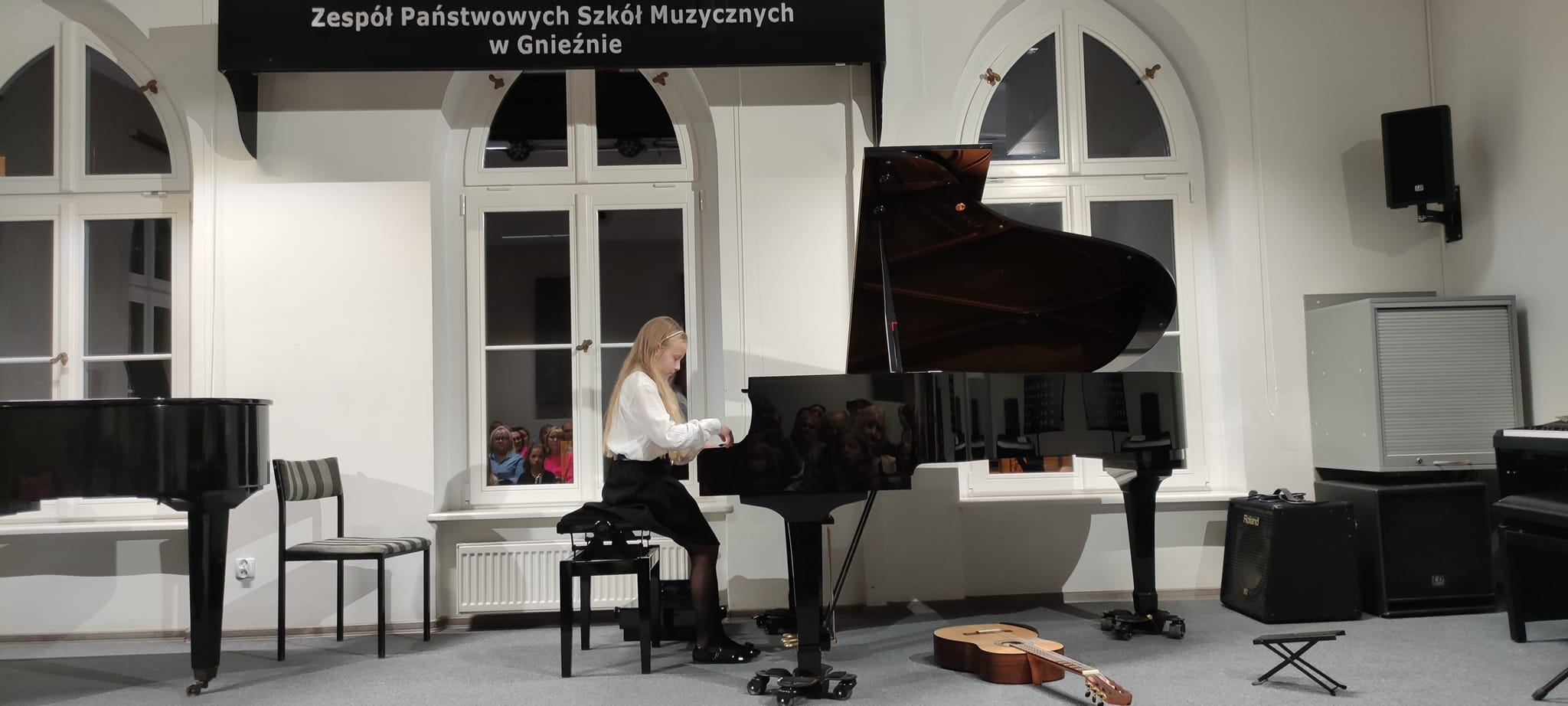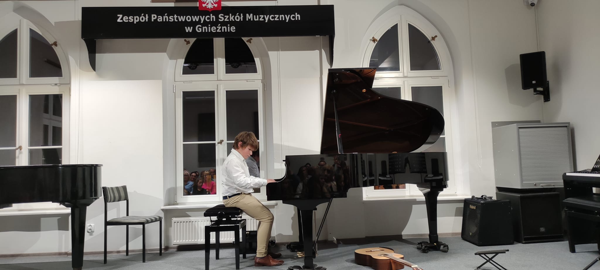 9 listopada 2023 w Auli Zespołu Państwowych Szkół Muzycznych w Gnieźnie odbył się koncert międzysekcyjny, w którym udział wzięli zarówno pianiści, skrzypkowie, gitarzyści, fleciści jak i puzoniści. Wszystkim wykonawcom serdecznie gratulujemy znakomitych prezentacji przygotowanych dzieł, a publiczności dziękujemy za tak liczne przybycie i gromkie oklaski dla młodych instrumentalistów. Zapraszamy na kolejne koncerty, o których poinformujemy już wkrótce!