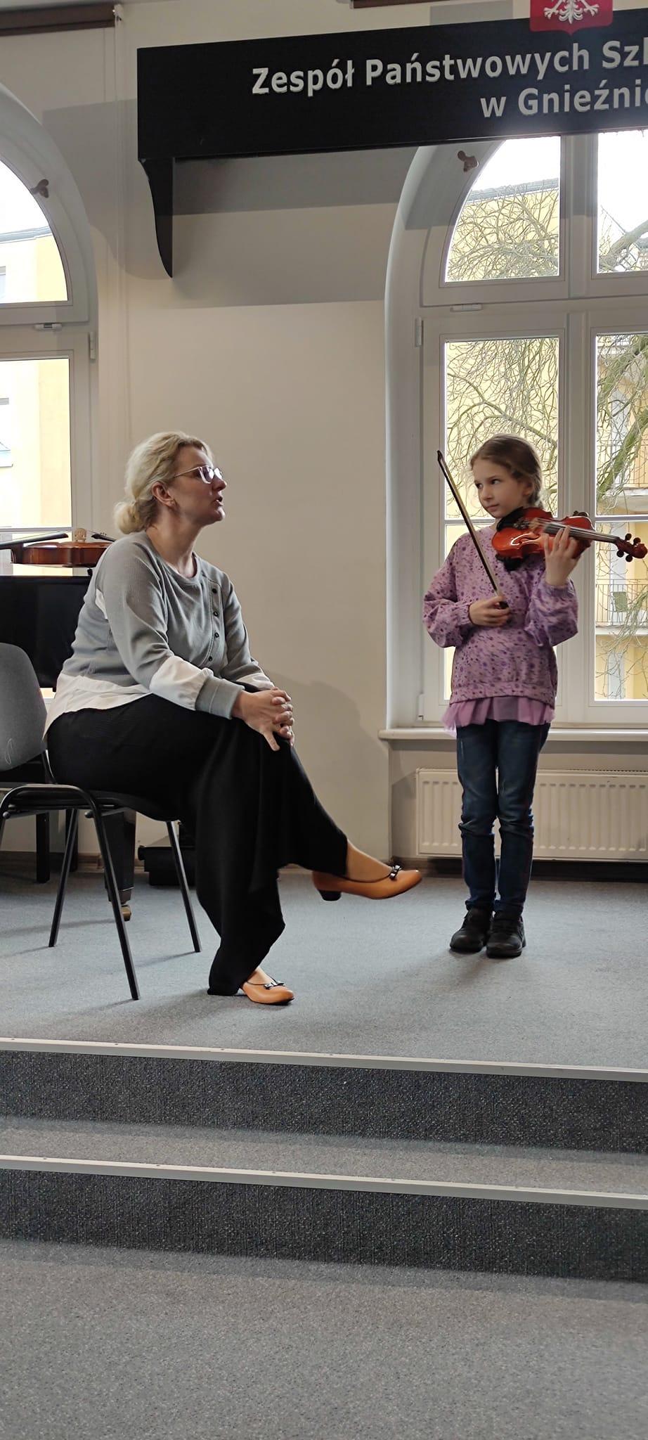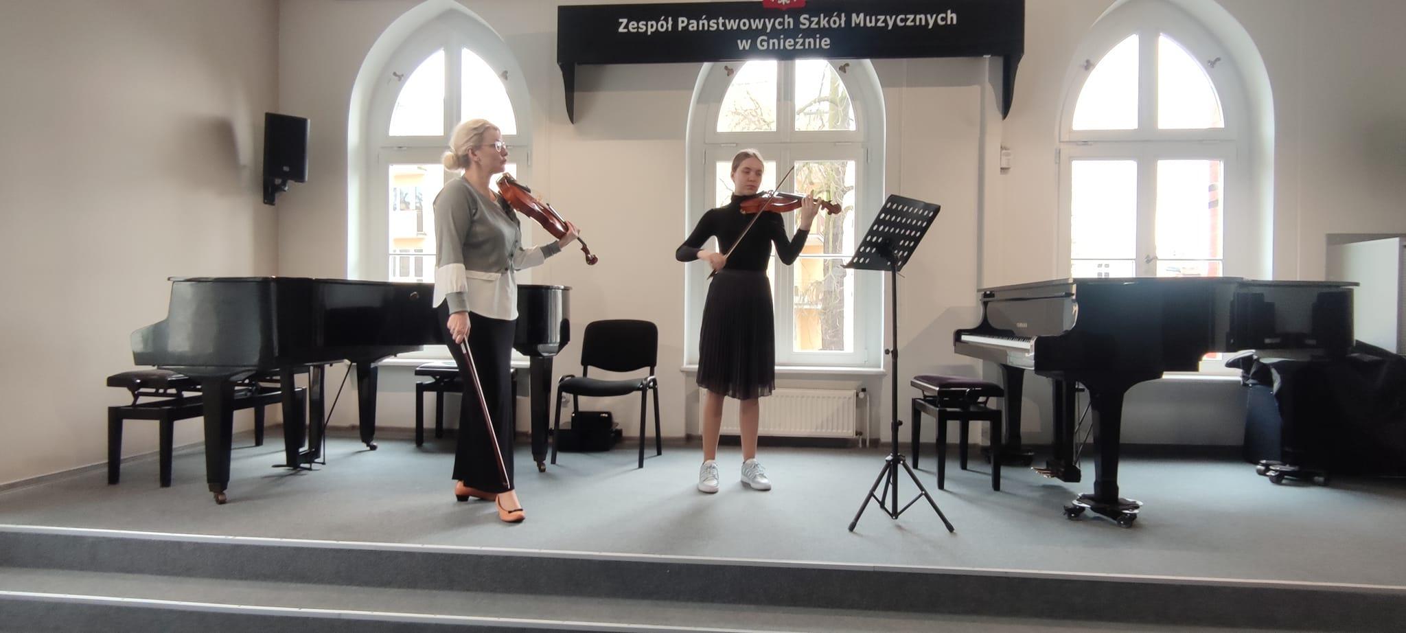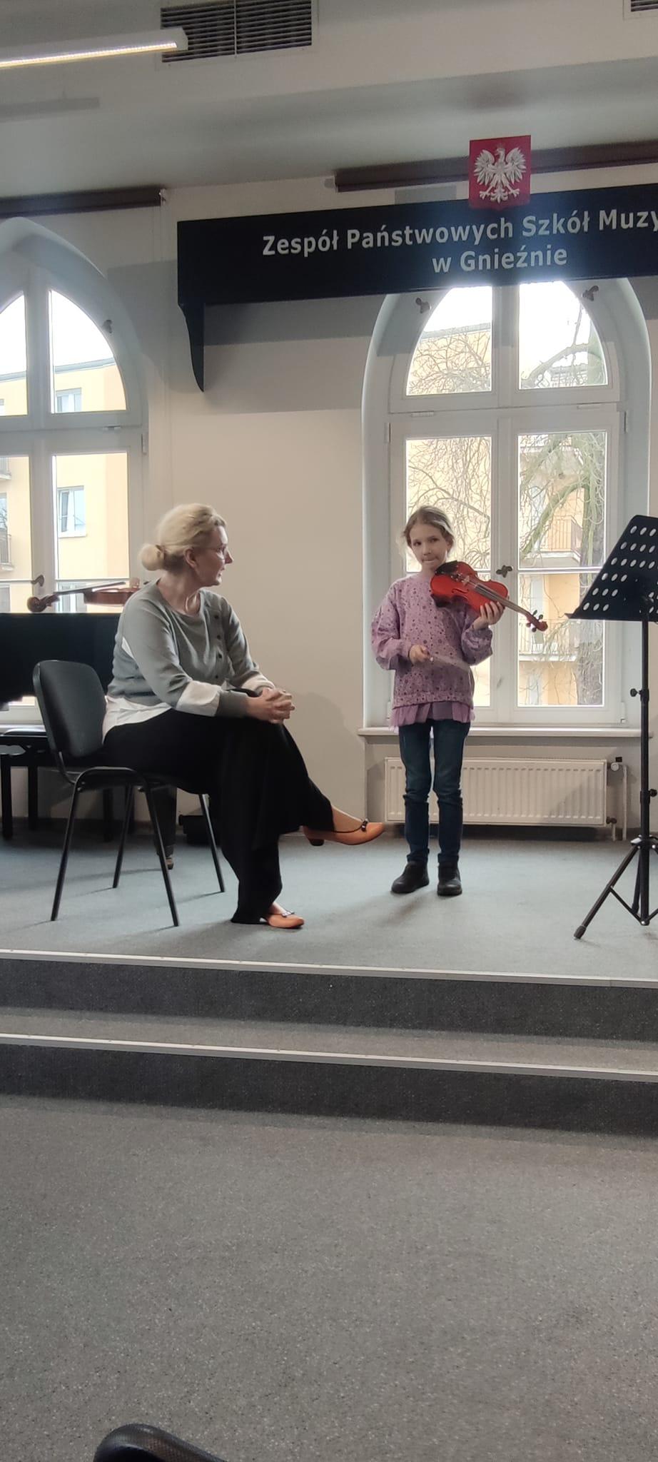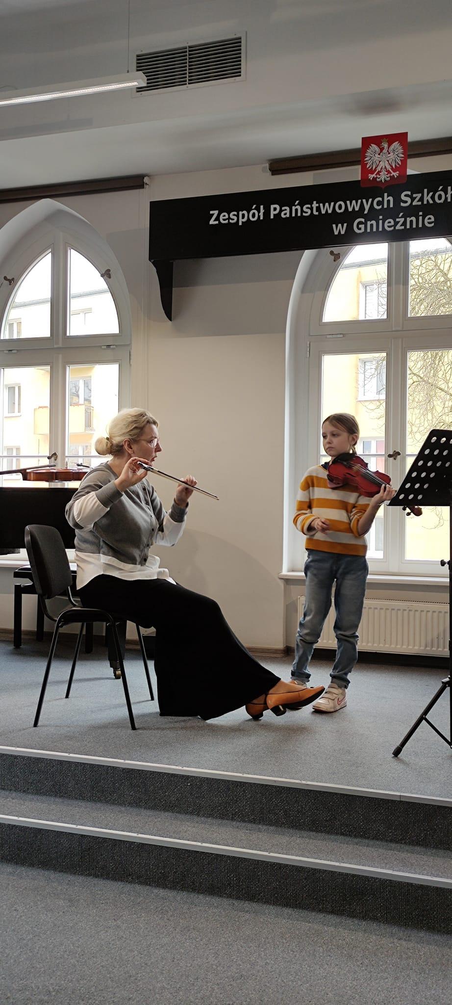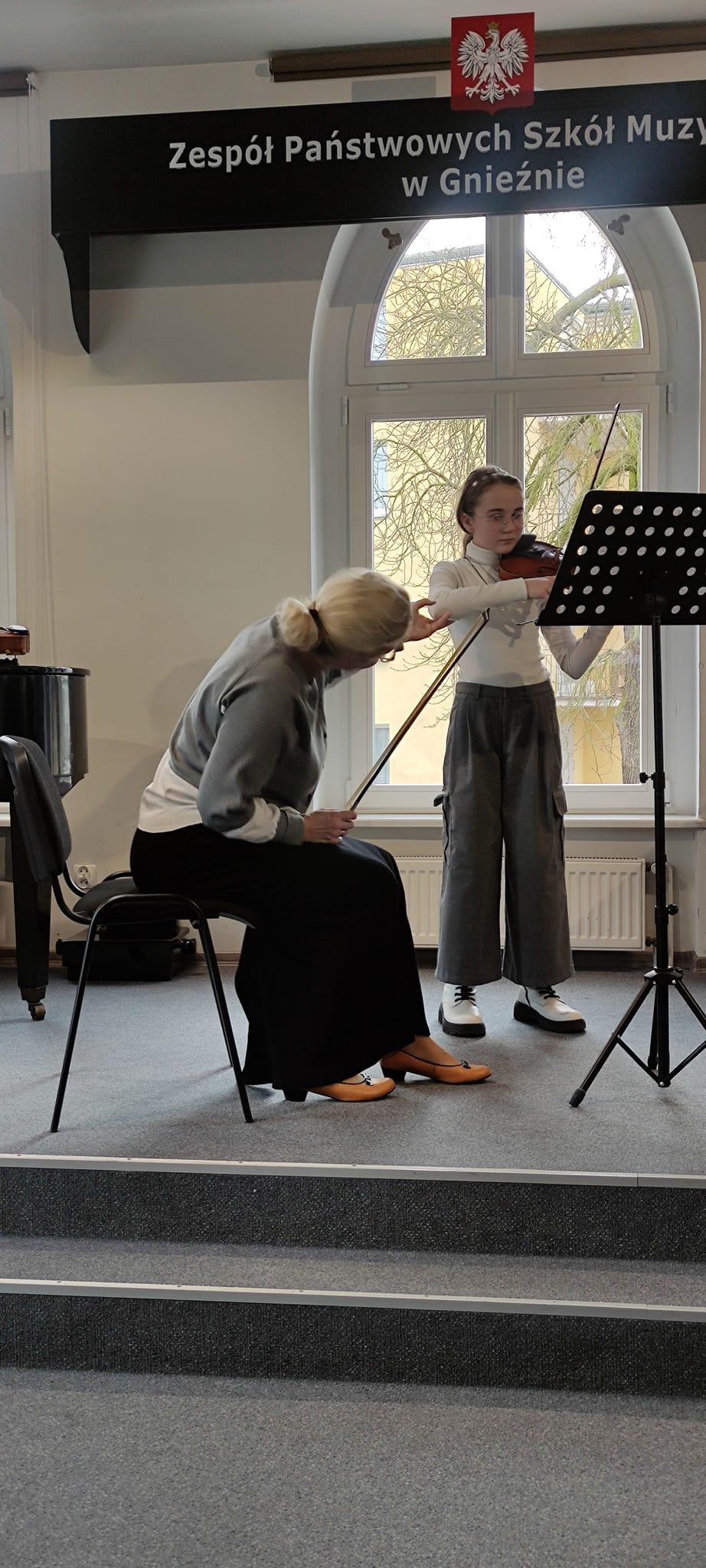 Dzisiejszy poniedziałek w Sekcji Instrumentów Smyczkowych i Szarpanych rozpoczął się niezwykłym wydarzeniem, które wprawiło nas w wyjątkowy nastrój. Koncert niezwykłego duetu dr hab. Ewy Guzowskiej (altówka) i dr. hab. Tomasza Kandulskiego (gitara) okazał się inspirującym przeżyciem, które towarzyszyło nam przez całe późniejsze Warsztaty Skrzypcowo - Altówkowe, prowadzone przez dr hab. Ewę Guzowską, profesor Akademii Muzycznej w Poznaniu. Pani Profesor nie tylko dzieliła się swoją wiedzą, lecz także z pasją ukazywała nam, jak doskonalić nasze umiejętności. To niezapomniane doświadczenie z pewnością zmotywuje nas do jeszcze większego zaangażowania w grę na instrumentach!