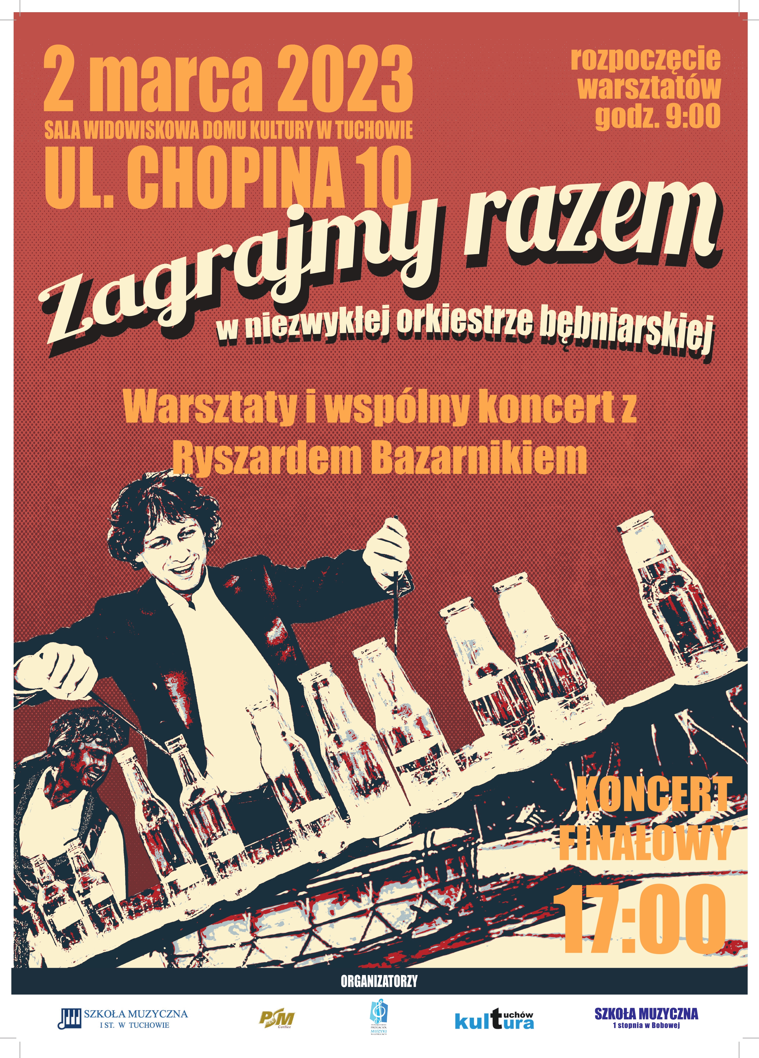 2 marca 2023 r. o godzinie 17:00 serdecznie zapraszamy do Domu Kultury w Tuchowie na wyjątkowy KONCERT będący zwieńczeniem warsztatów perkusyjnych prowadzonych przez Ryszarda Bazarnika, w których będą brać udział Uczniowie i Nauczyciele Szkoły Muzycznej I st. w Tuchowie, Szkoły Muzycznej I st. w Bobowej oraz Zespołu Państwowych Szkół Muzycznych w Gorlicach. Nie może Was zabraknąć! ![]()