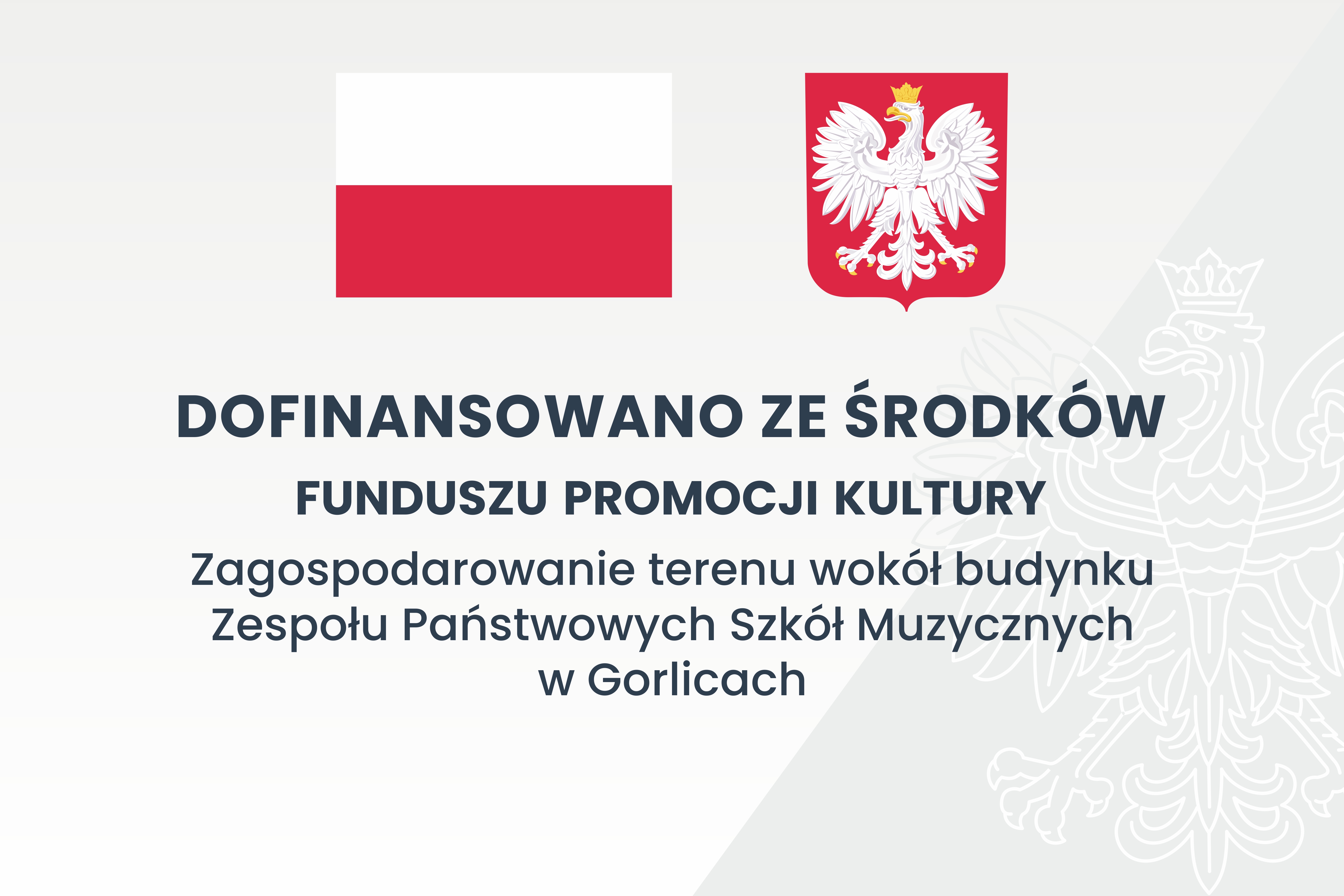 Nazwa zadania: Zagospodarowanie terenu wokół budynku Zespołu Państwowych Szkół Muzycznych w Gorlicach. Dofinansowano ze środków Ministra Kultury i Dziedzictwa Narodowego pochodzących z Funduszu Promocji Kultury - państwowego funduszu celowego.