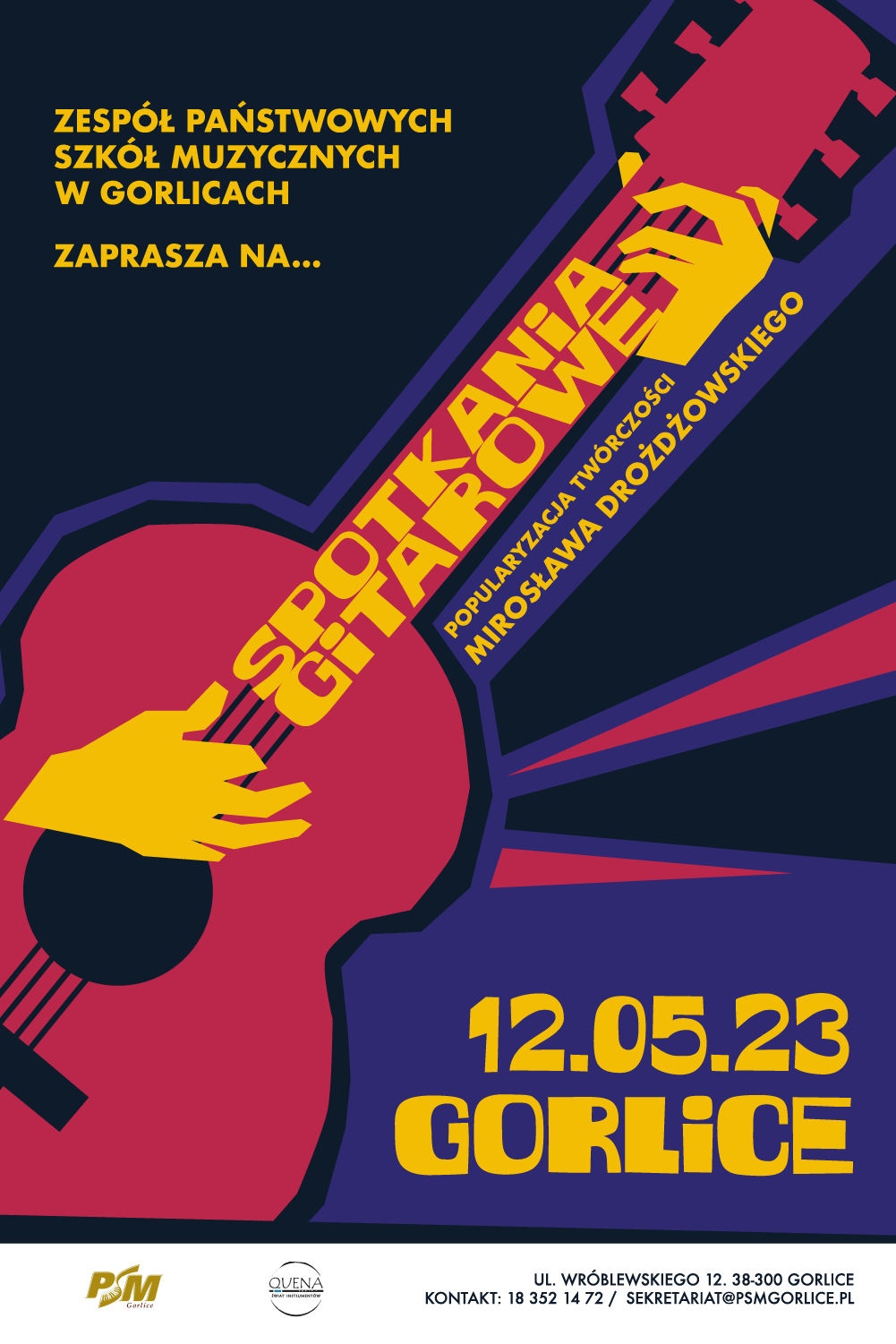 Zapraszamy do udziału w Spotkaniach Gitarowych, które odbędą się 12 maja 2023 roku w ZPSM w Gorlicach. Regulamin oraz elektroniczny formularz zgłoszenia jest dostępny pod adresem: https://www.gov.pl/web/zpsmgorlice/spotkania-gitarowe Aktualne informacje na profilu Spotkań Gitarowych na Facebooku. Serdecznie zapraszamy!