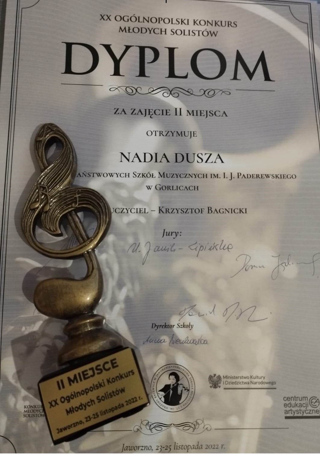 Nadia kształci się pod kierunkiem Pana Krzysztofa Bagnickiego. Serdecznie gratulujemy ![]()