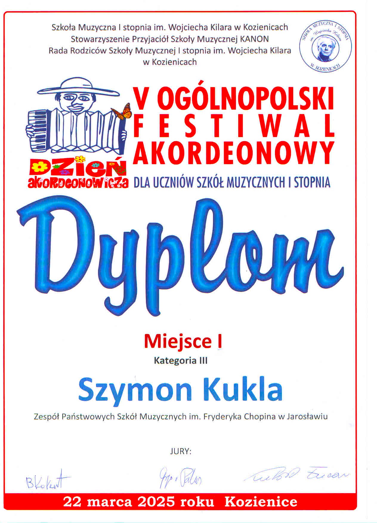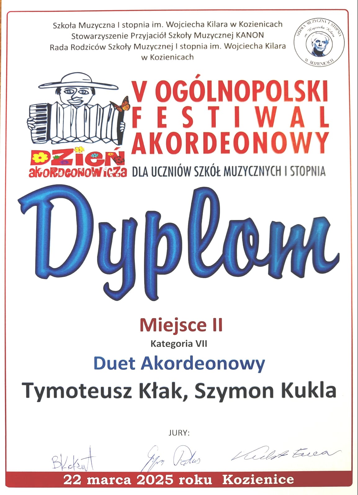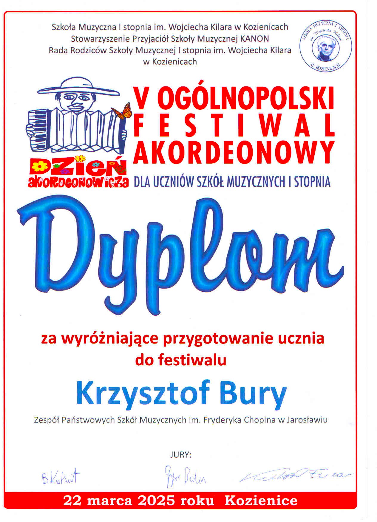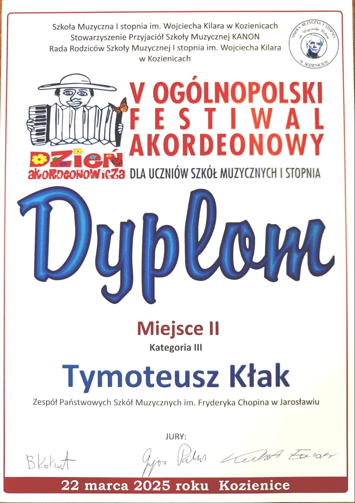Akordeoniści ZPSM im. F. Chopina w Jarosławiu zwycięzcami Ogólnopolskiego Festiwalu Akordeonowego w Kozienicach! - 22 marca 2025 r.