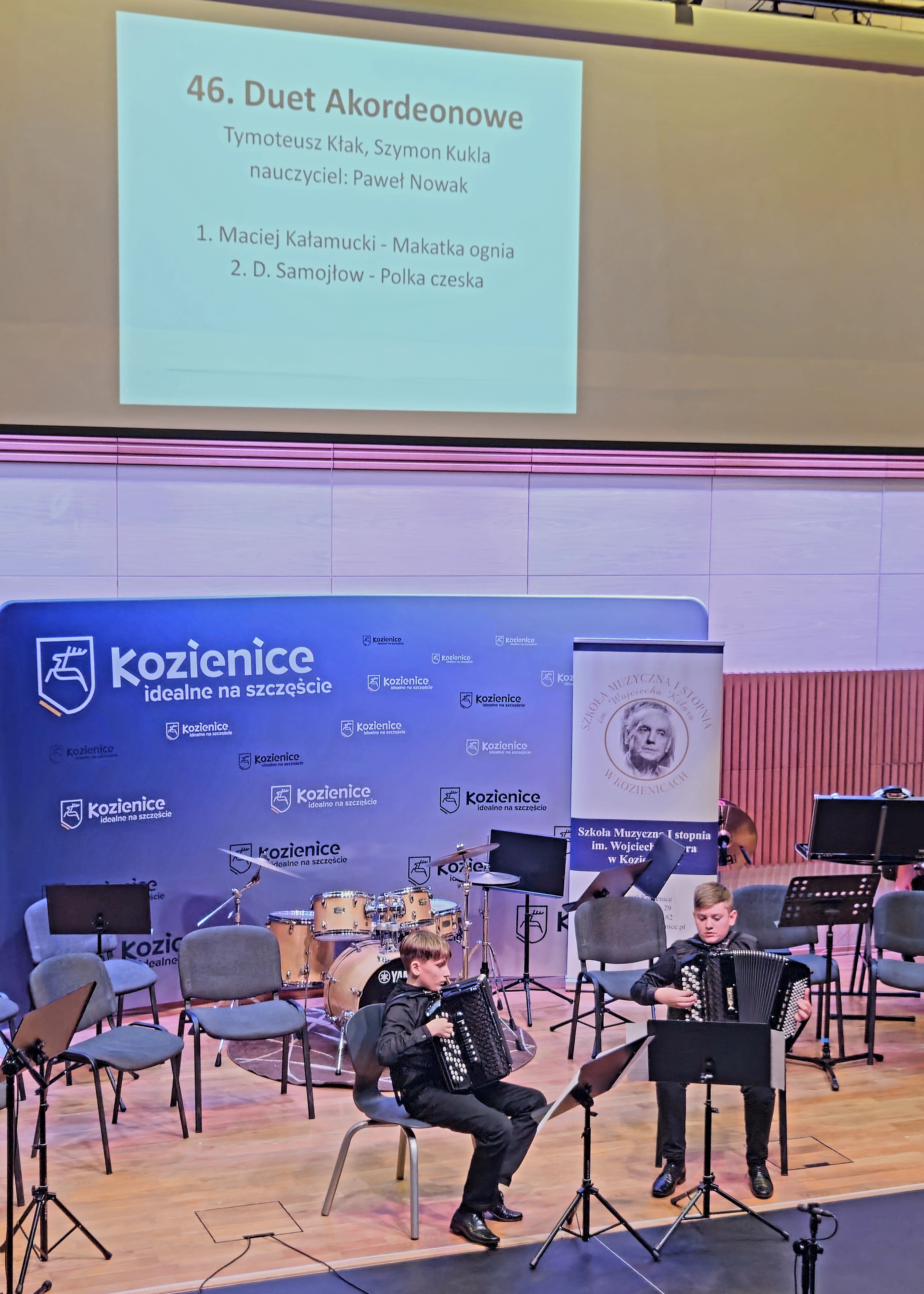 Dodatkowym wyróżnieniem był występ Michała Kosińskiego oraz Szymona Kukli na uroczystym koncercie laureatów festiwalu, po którym nasi uczniowie otrzymali gromkie brawa od licznie zgromadzonej publiczności.