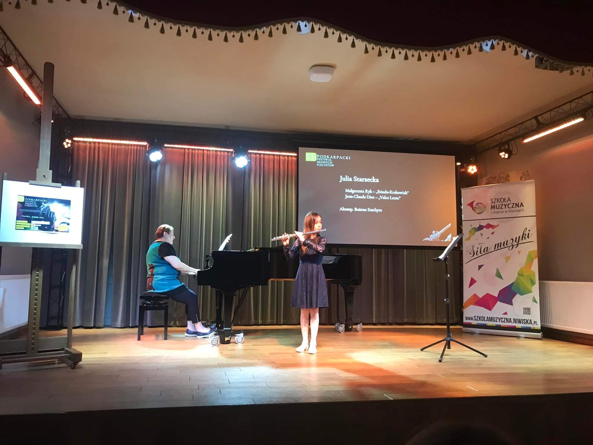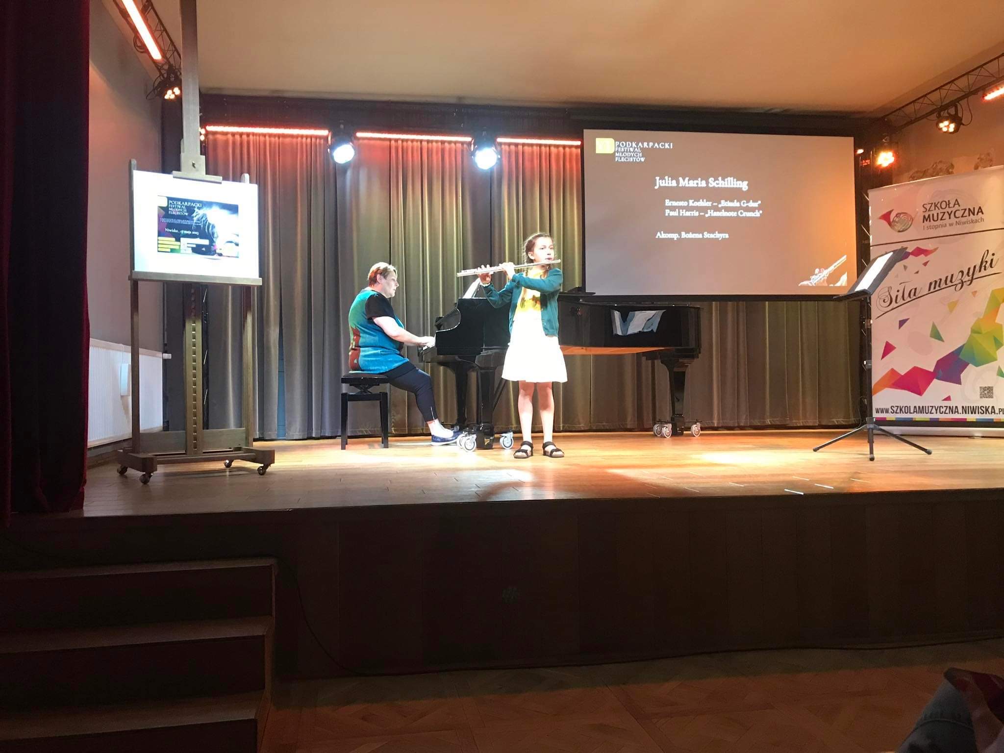 W dniu 17 maja 2023 r. odbył się VI Podkarpacki Festiwal Młodych Flecistów w Niwiskach. Naszą szkołę reprezentowały na nim dwie uczennice klasy 2 cyklu sześcioletniego - Julia Starzecka oraz Julia Schilling. Obie uczennice zostały docenione dyplomem oraz nagrodą za wyróżnienie pierwszego stopnia. Gratulujemy!