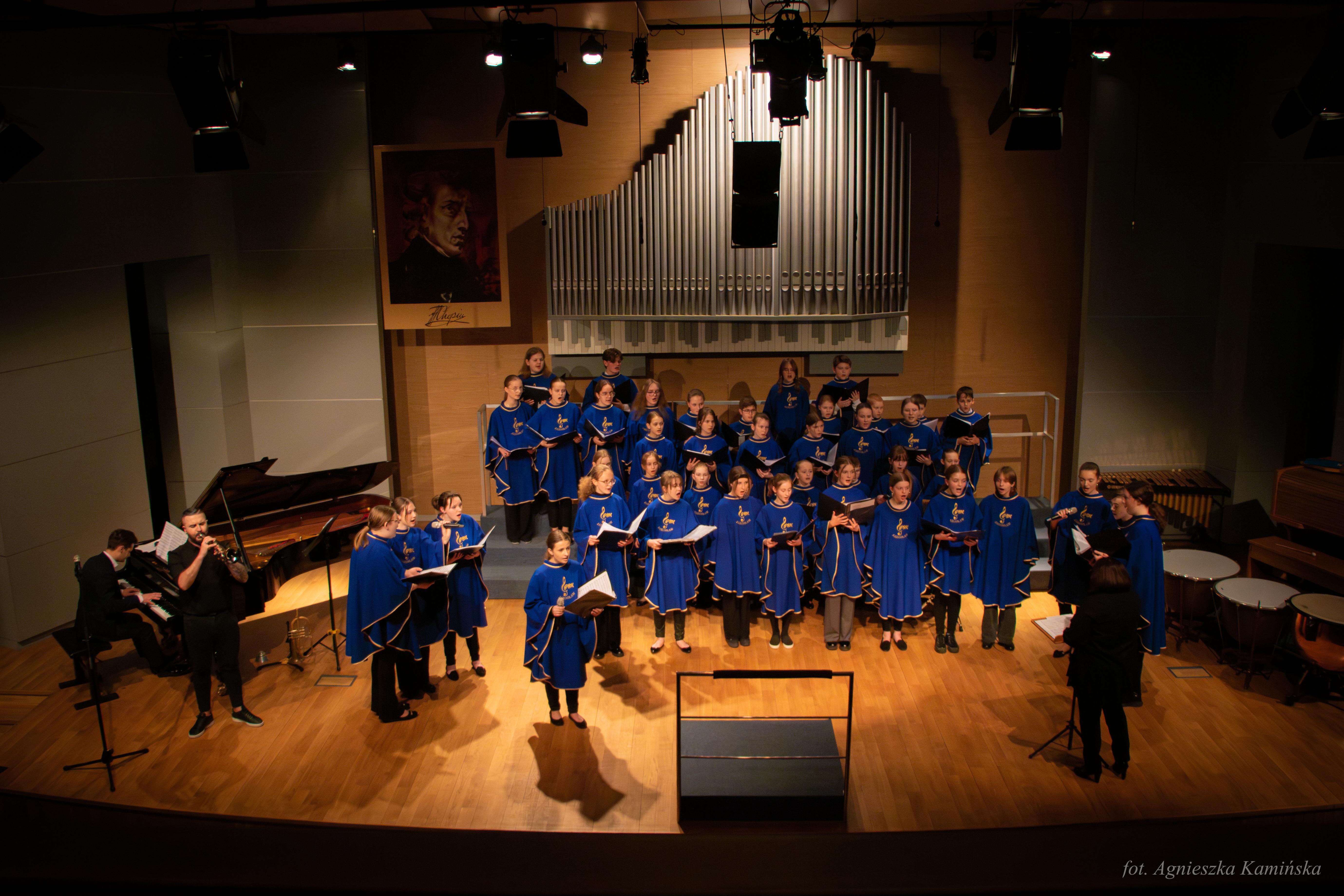 Serdecznie zapraszamy do obejrzenia relacji zdjęciowej z Koncertu Kolęd, który się odbył 25 stycznia 2024 r. w naszej szkole. Wśród występujących znalazły się kameralne zespoły instrumentalne - duet fletowy prowadzony przez p. Jagodę Pietrusiak-Kasprzyk, trio saksofonowe p. Andrzeja Grębosza oraz duet trąbkowy p. Wojciecha Szeli, a także te najbardziej liczne zespoły jak Chór PSM I st. pod dyrekcją p. Jadwigi Nowosiad oraz Orkiestra ZPSM pod dyrekcją p. Martyny Lasoty. Autorem zdjęć jest p. Agnieszka Kamińska