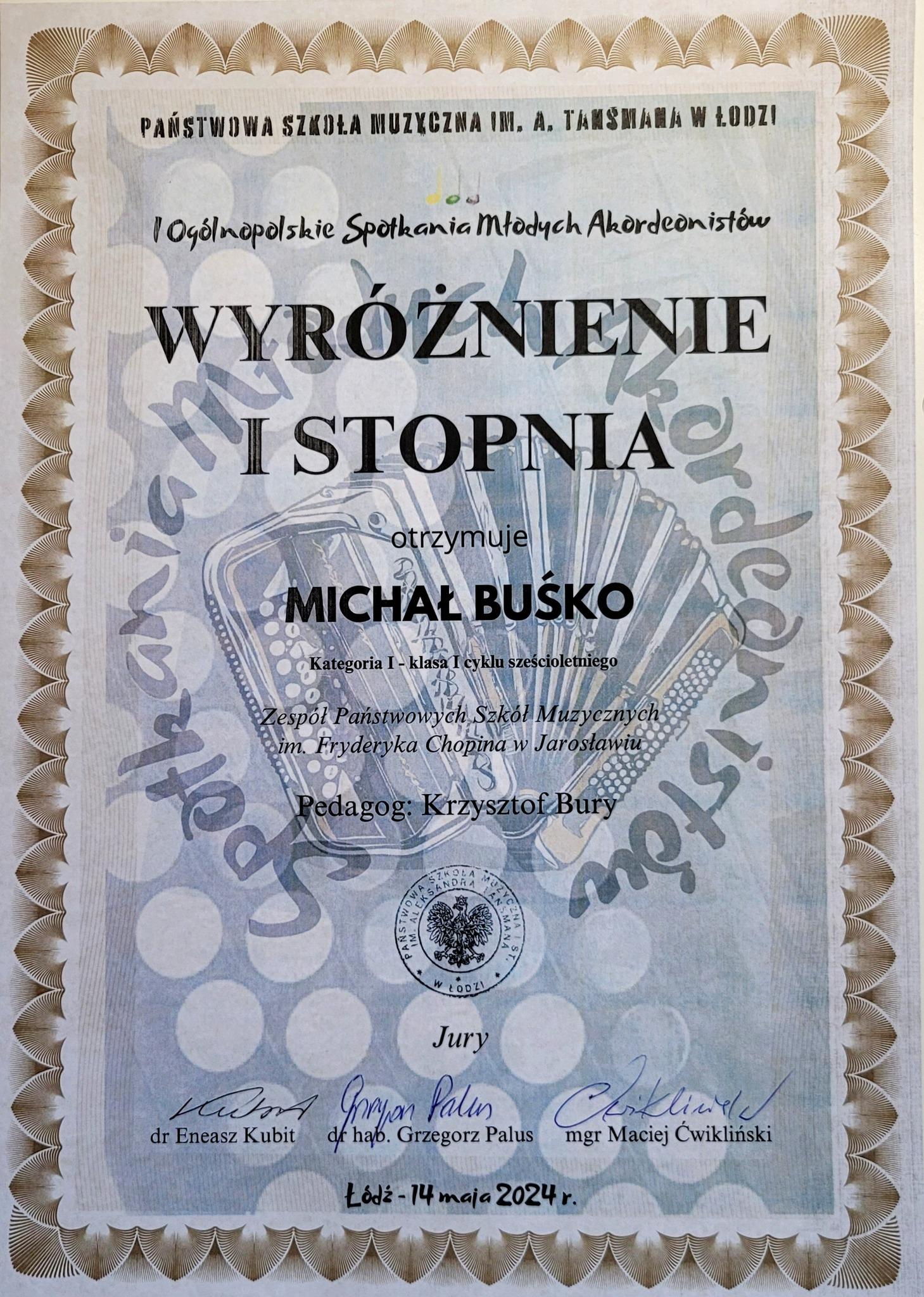 Wyróżnienie I stopnia – Michał Buśko