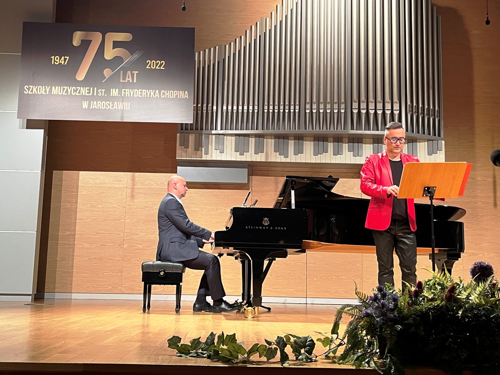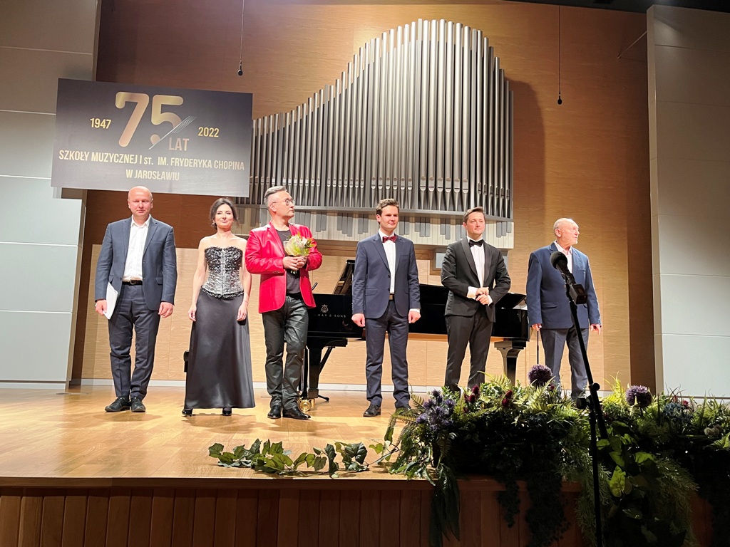 Wystąpili: Jagoda Pietrusiak-Kasprzyk (flet), Julia Surmacz (skrzypce), Jacek Ścibor (tenor), Aleksander Koziński (fortepian), Marcin Kasprzyk (fortepian), Łukasz Stanisławczyk (fortepian) i Paweł Węgrzyn (fortepian). O życiu i działalności dyrektorskiej mówiła podczas koncertu Grażyna Sereda, dyrektor Zespołu Szkół Muzycznych im. Fryderyka Chopina w Jarosławiu: