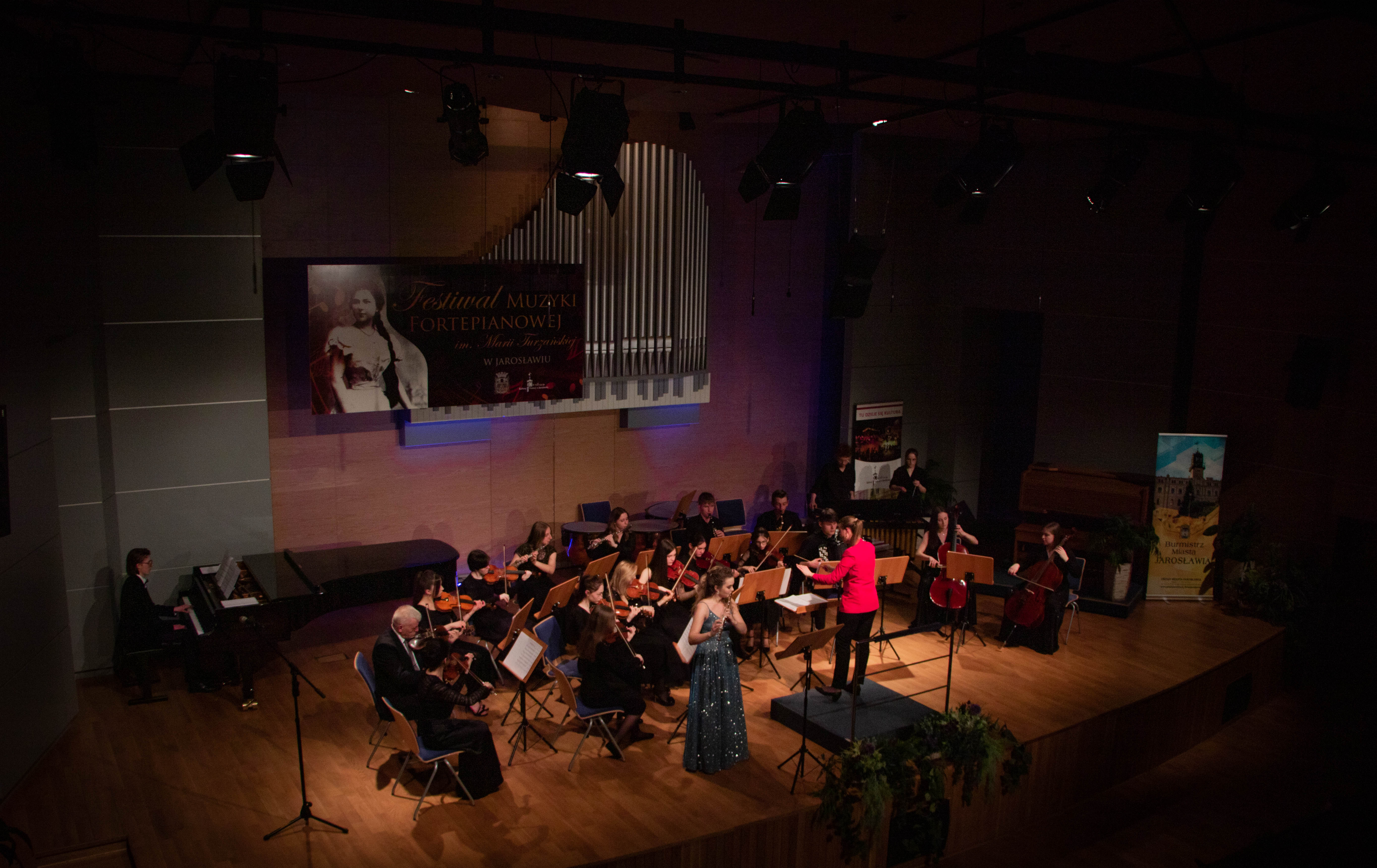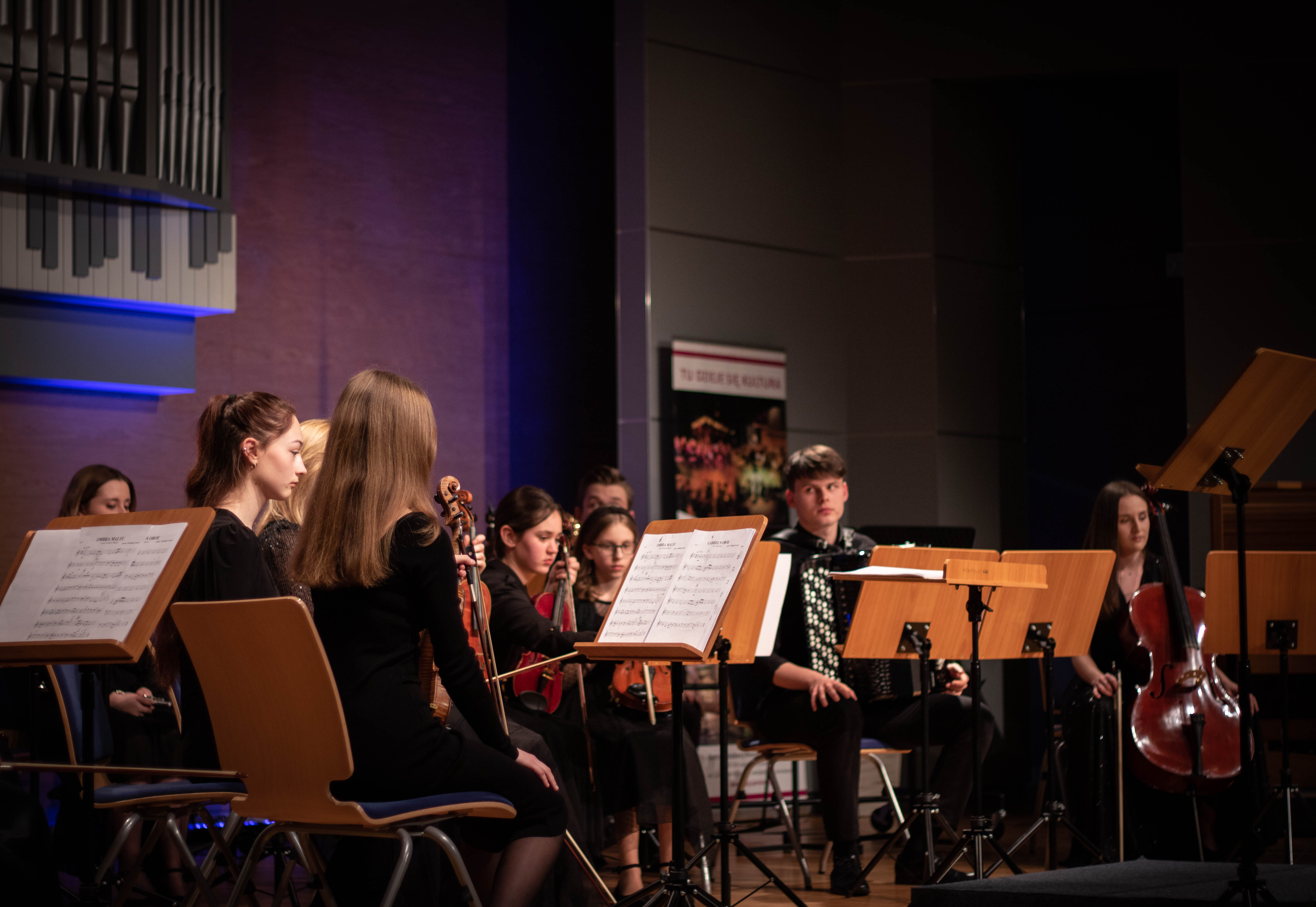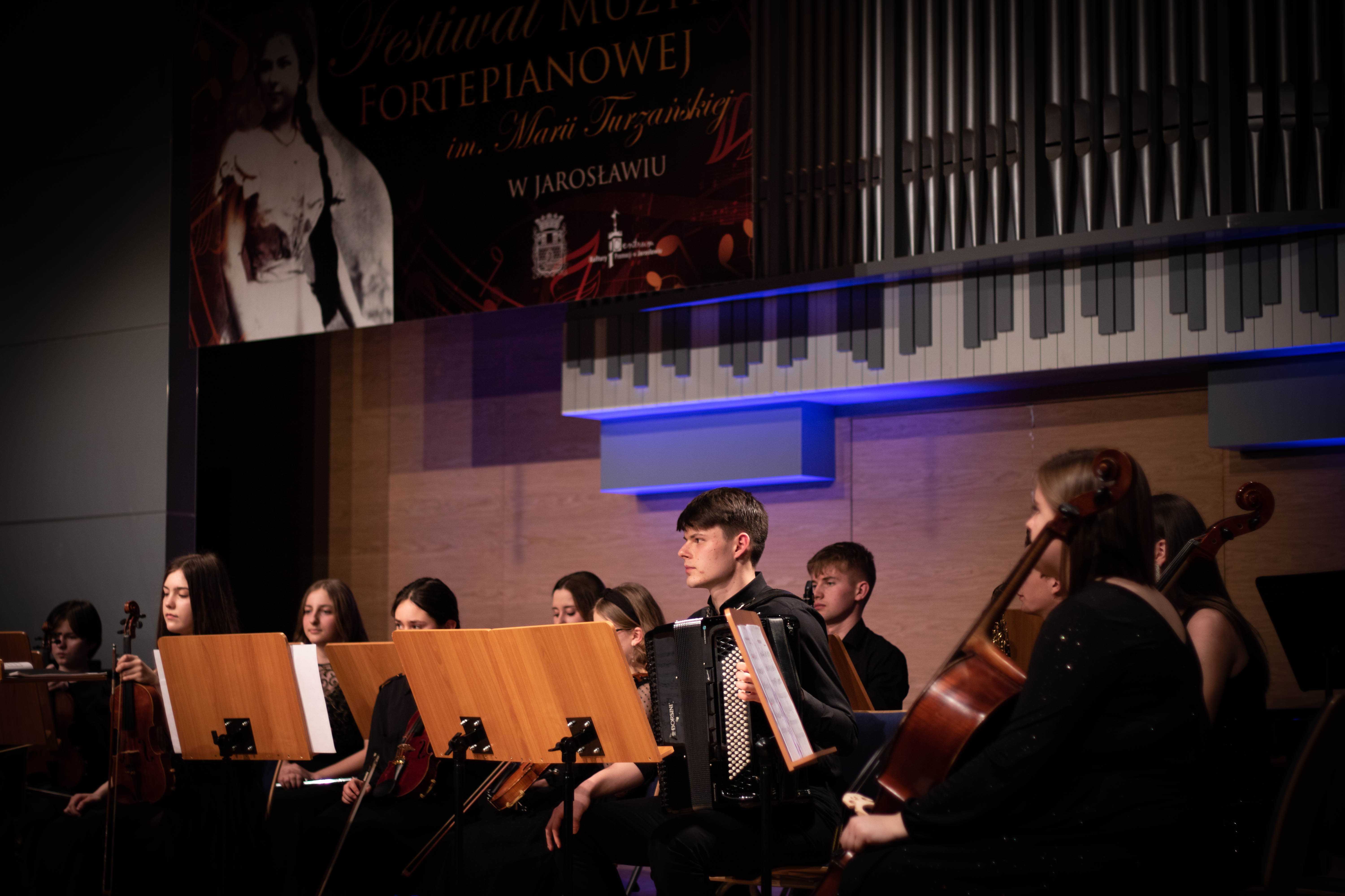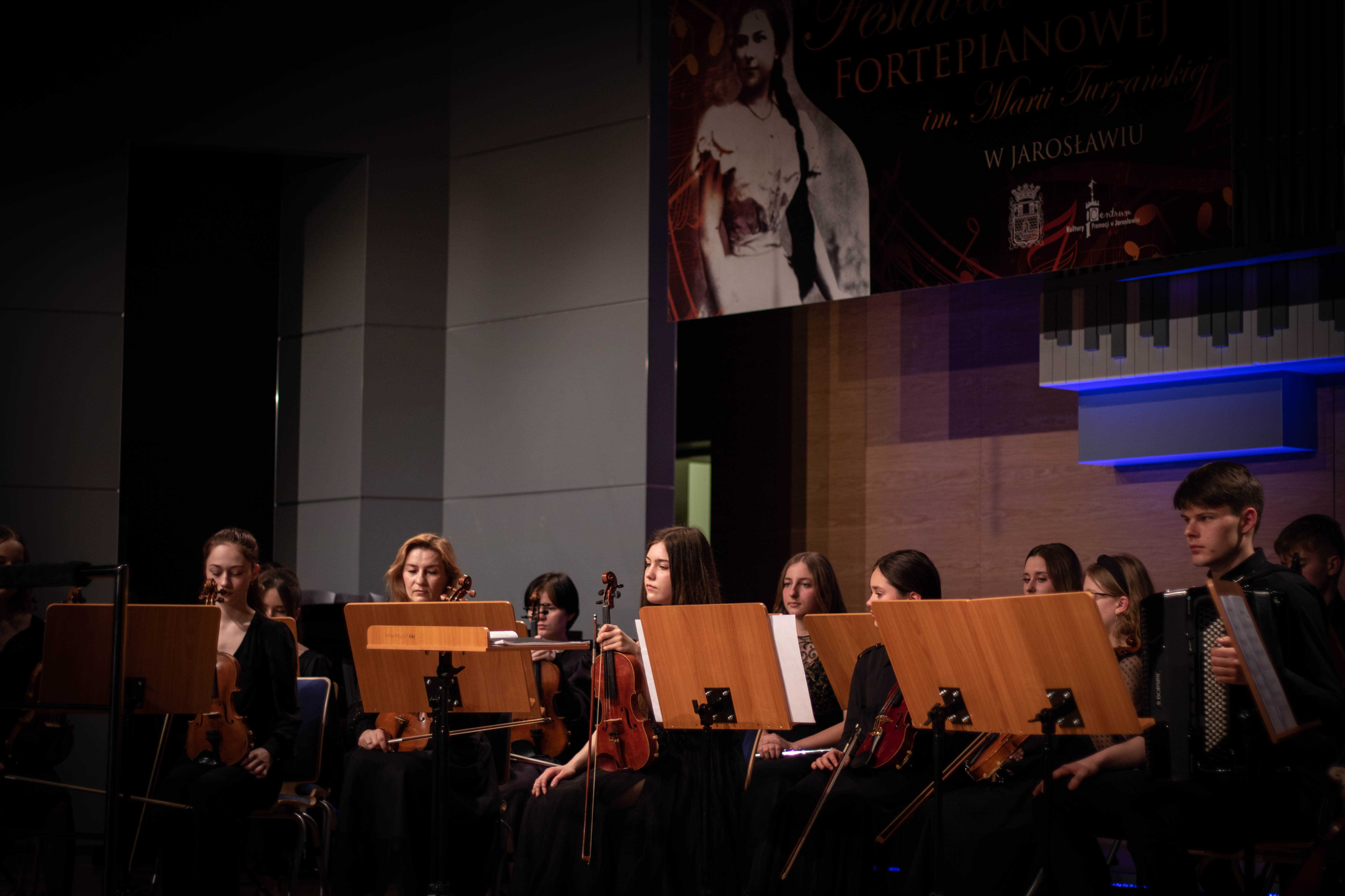 25 lutego Orkiestra Zespołu Państwowych Szkół Muzycznych im. Fryderyka Chopina w Jarosławiu pod dyrekcją Martyny Lasoty zainaugurowała tegoroczny Festiwal Muzyki Fortepianowej im. Marii Turzańskiej 2023. Podczas tego wieczoru, zgromadzona tłumnie publiczność wysłuchała transkrypcji orkiestrowych najpopularniejszych utworów muzyki klasycznej takich jak „Badinerie” z Suity nr 2 h-moll Jana Sebastiana Bacha, „Adagio” Tomaso Albinoniego, „Te Deum” Marca-Antoine’a Charpentiera, a także utworów polskich kompozytorów: Fryderyka Chopina, Ignacego Jana Paderewskiego, Karola Szymanowskiego oraz Dominika Lasoty. Orkiestrze towarzyszyła w roli solisty – flecistka Jagoda Pietrusiak-Kasprzyk. Ciekawe interpretacje, a także kunszt artystyczny wszystkich wykonawców zostały docenione przez zgromadzoną publiczność za sprawą owacji na stojąco i gromkich braw. W odpowiedzi na entuzjastyczne przyjęcie młodych wykonawców, orkiestra wraz z solistką odpowiedziała dwukrotnym bisem. Wszystkim wykonawcom serdecznie gratulujemy i zachęcamy do obejrzenia relacji zdjęciowej z tego wydarzenia (fot. Agnieszka Kamińska).