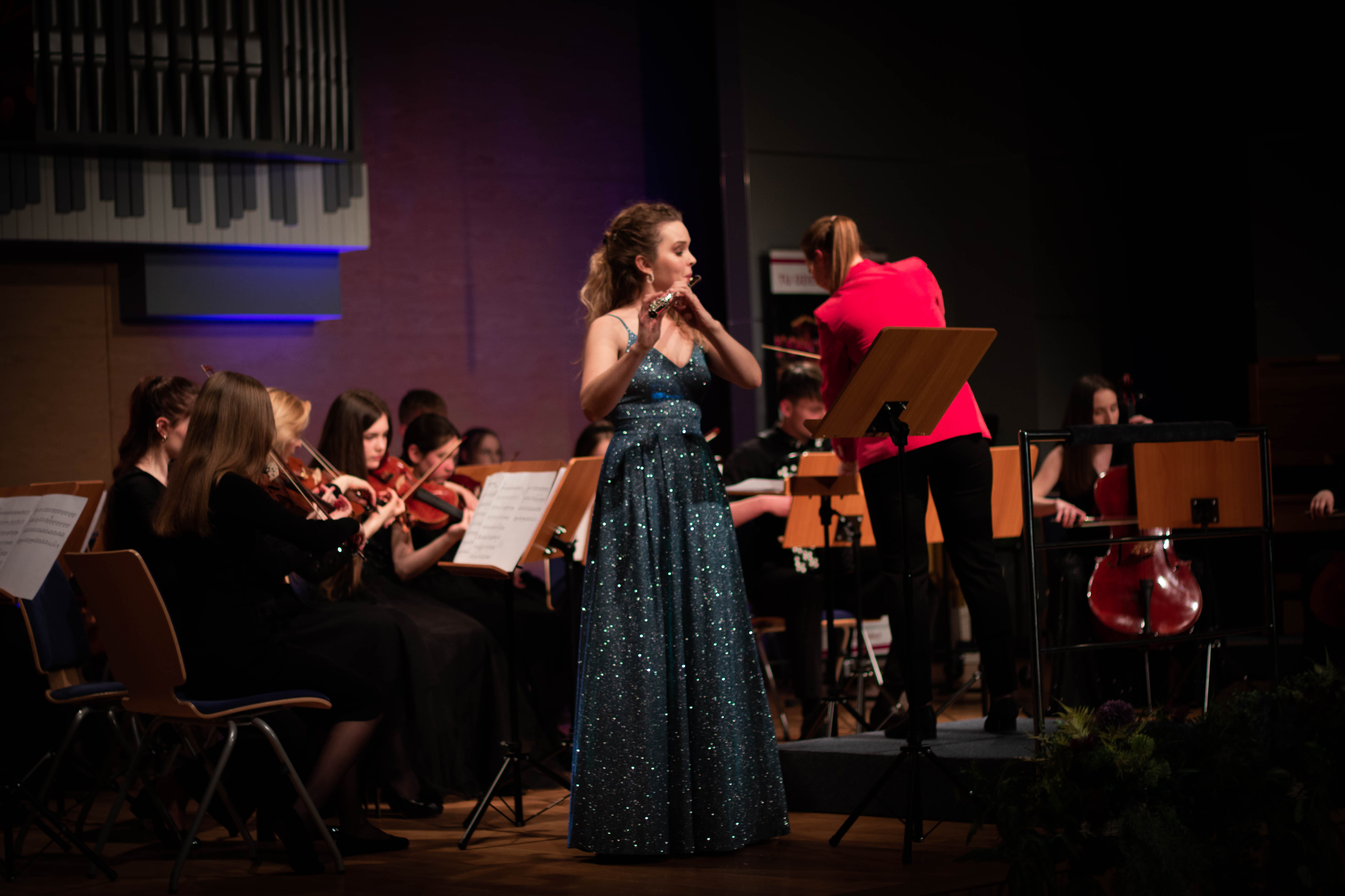 Koncert Inauguracyjny Festiwalu Muzyki Fortepianowej im. Marii Turzańskiej w wykonaniu Orkiestry ZPSM im. F. Chopina w Jarosławiu pod dyrekcją Martyny Lasoty (Jagoda Pietrusiak-Kasprzyk – flet) Sala Koncertowa 25 lutego 2023 r.