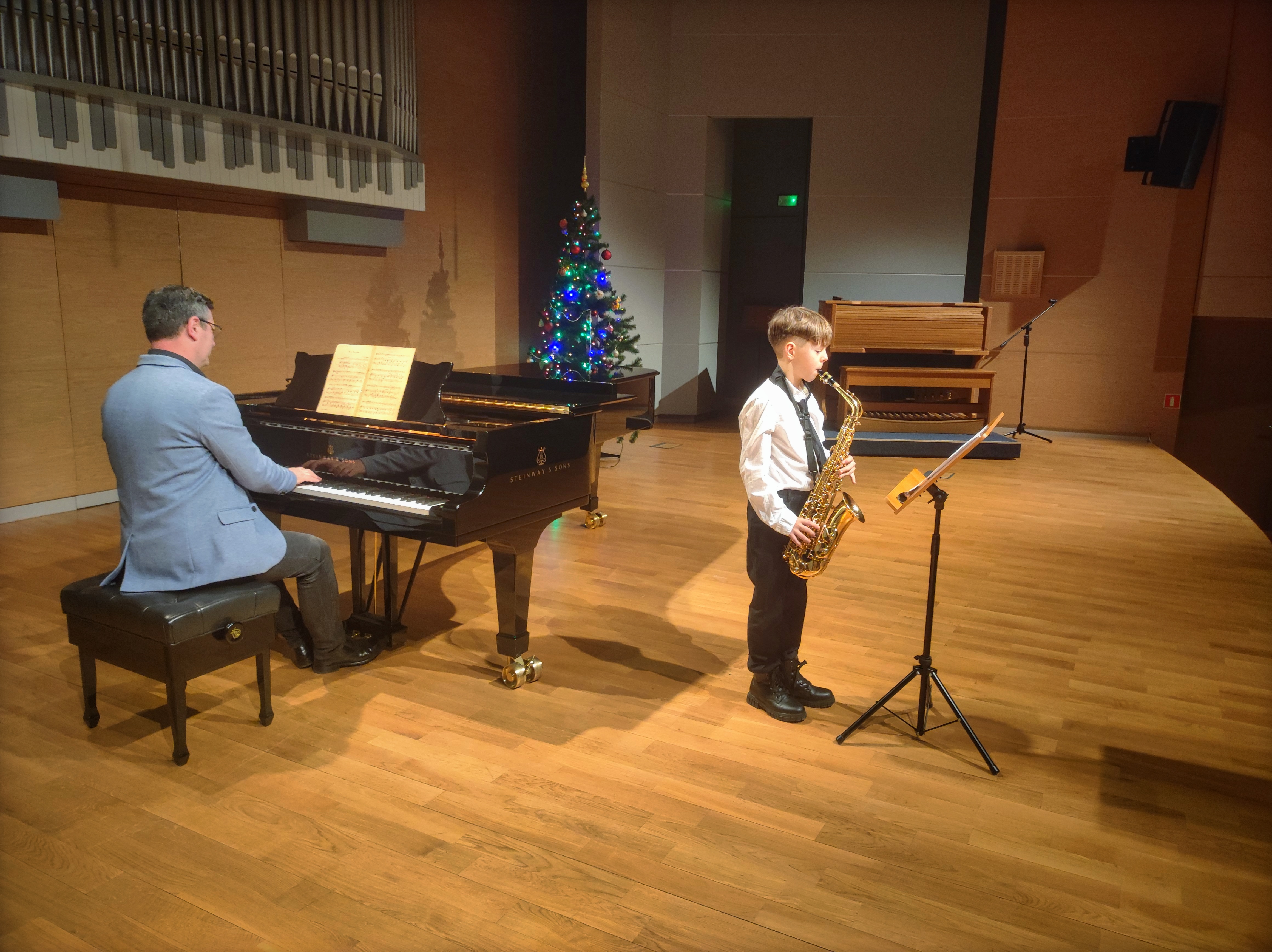 10 stycznia 2023 r. w Sali Koncertowej ZPSM im. F. Chopina w Jarosławiu odbył się Koncert Noworoczny. Na scenie zgromadzili się uczniowie zaprzyjaźnionych Sekcji Instrumentów Dętych Zespołu Państwowych Szkół Muzycznych im. A . Malawskiego w Przemyślu i Zespołu Państwowych Szkół Muzycznych im. F. Chopina w Jarosławiu. Przez „Koncert Noworoczny” przeprowadzał nas głos narratora – Bogusława Pawlaka i utwory klasyczne, rozrywkowe oraz piękne polskie kolędy wykonywane przez uczniów klasy fletu, saksofonu, trąbki przy akompaniamencie: Pani Bożeny Stachyra-Płonka, Pana Wojciecha Majchrowicza, Pana Jakuba Międlara, Pana Tu Van Alberta i Ignacego Magonia. Dziękujemy nauczycielom za przygotowanie uczniów do koncertu: Pani Jagodzie Pietrusiak-Kasprzyk, Pani Jolancie Antonik, Panu Jarosławowi Szuperowi, Panu Andrzejowi Gręboszowi oraz Panu Franciszkowi Lotyczowi. Inicjatywa wspólnego koncertowania została bardzo przychylnie przyjęta przez wszystkich zgromadzonych, dlatego organizatorzy już myślą o kolejnych wspólnych wydarzeniach. Gratulujemy wszystkim wykonawcom a Dyrekcjom obu szkół za umożliwienie wspólnego koncertowania.