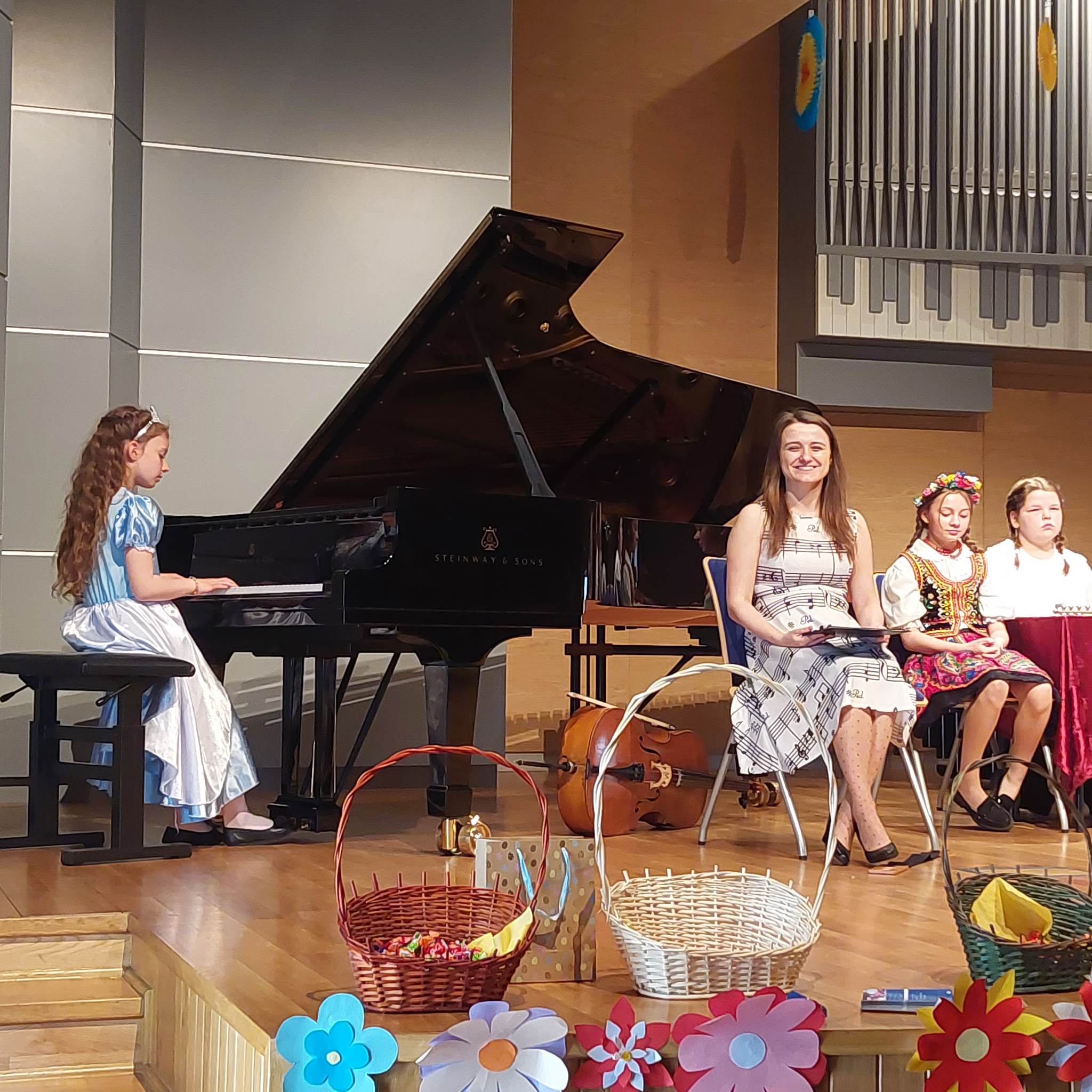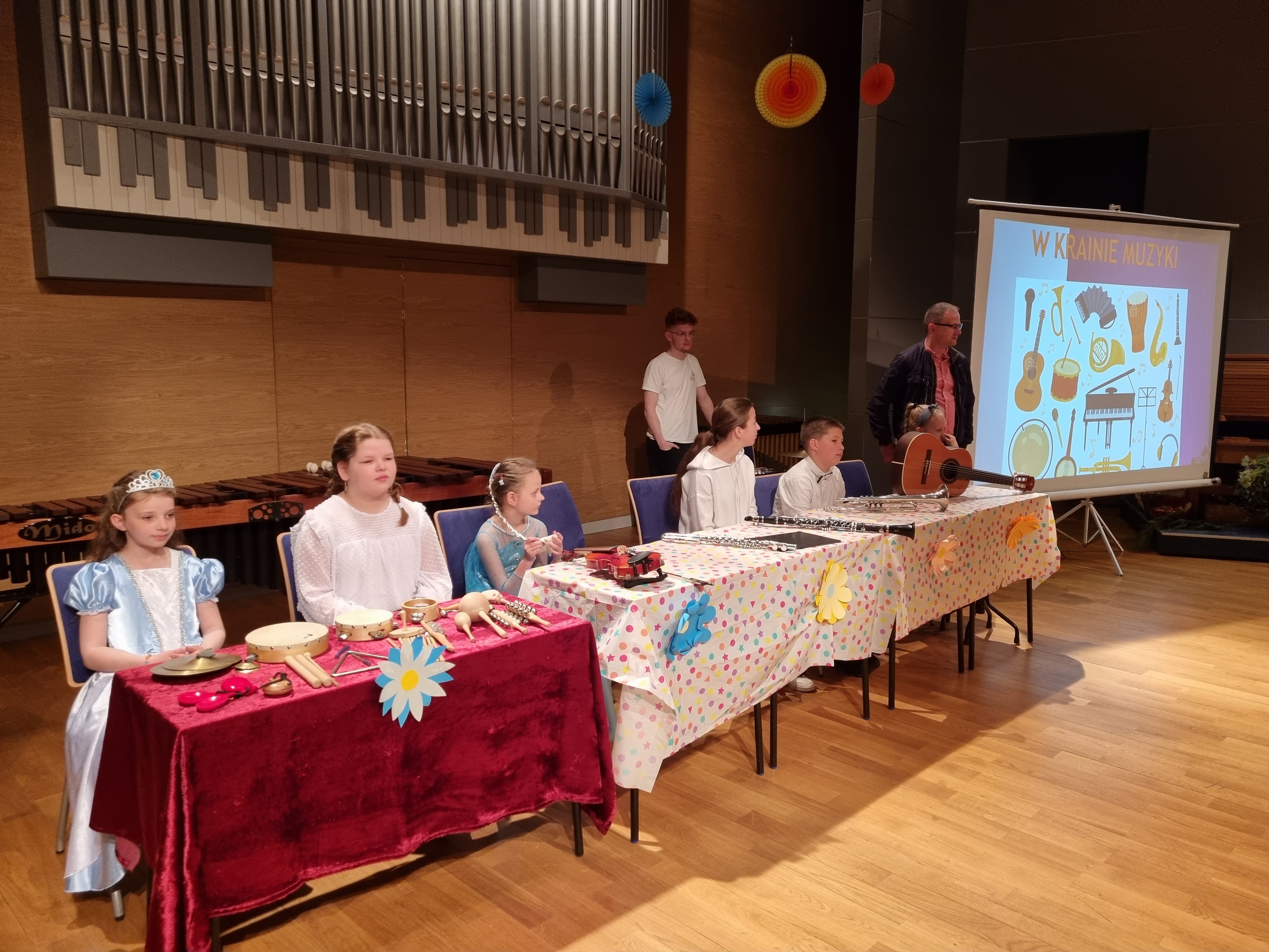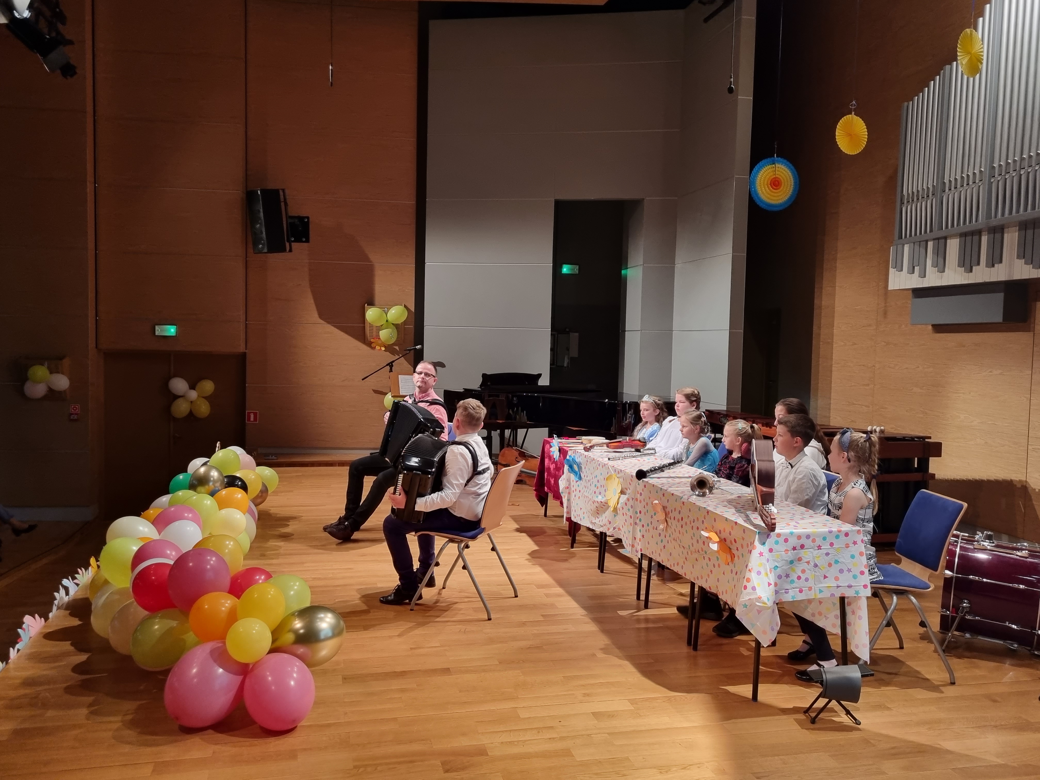 Dnia 17 maja br. w Sali Koncertowej Zespołu Państwowych Szkół Muzycznych im. Fryderyka Chopina w Jarosławiu odbyły się dwa koncerty dla dzieci z przedszkoli oraz szkół w Jarosławiu. Zostały one zorganizowane przez Panią mgr Paulinę Wilk oraz Panią mgr Joannę Nowak. W przygotowaniu pomagał także Pan mgr Bogusław Pawlak, który dodatkowo poprowadził koncerty wprowadzając dzieci w magiczną krainę muzyki i dźwięków. W wydarzeniu wzięły udział dzieci z Miejskiego Przedszkola nr 9 im. Jana Brzechwy, Miejskiego Przedszkola nr 12, Szkoły Podstawowej nr 6 im. ks. Piotra Skargi oraz Szkoły Podstawowej nr 11 im. Adama Mickiewicza. Uczniowie naszej szkoły zaprezentowali swoje umiejętności gry na różnych instrumentach demonstrując je słuchaczom. Dla uczestników były przygotowane różne zagadki oraz drobne upominki. Finałem wydarzenia było utworzenie małej orkiestry z chętnych słuchaczy, którzy zagrali na instrumentach perkusyjnych do piosenki Jolanty Kucharczyk pt. “Wesołe instrumenty”, przy której publiczność klaskała w rytm muzyki. Zapraszamy do obejrzenia fotorelacji z tego wydarzenia.